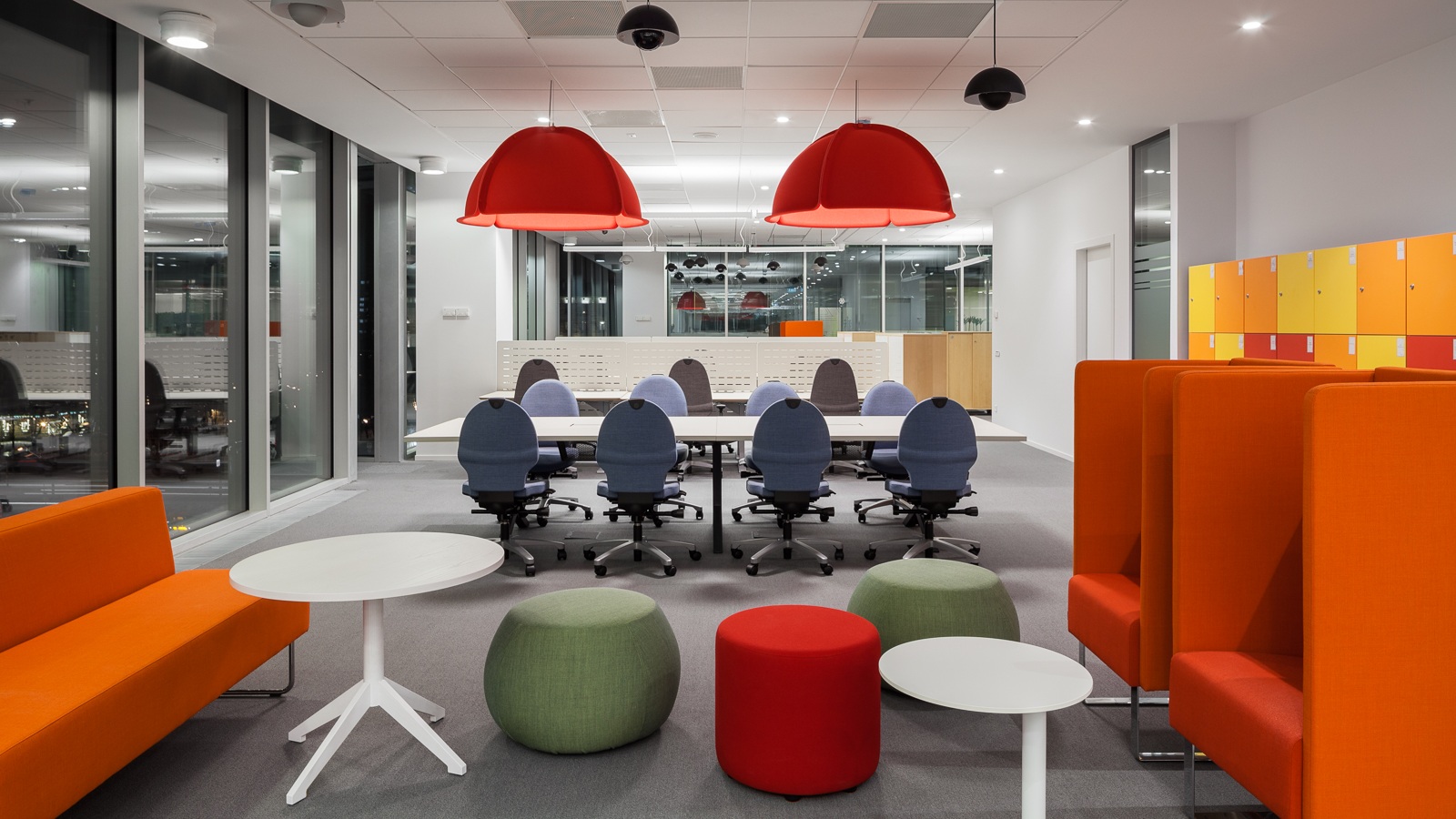 For the interior, it was decided to choose the furniture made by leading European manufacturers: Lammhults, Offect, Materia, Hay, Pedrali, Arper, Karl Andersson Soner, Kartell, and Flokk.