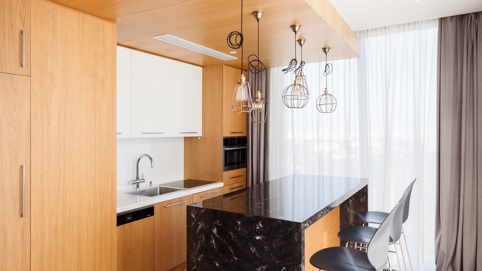 The three-bedroom apartments are located in the modern business center «Lotus» of class A on Nakhimovskiy Avenue. The project was developed by the architect at Atitoka Tatyana Shershneva.