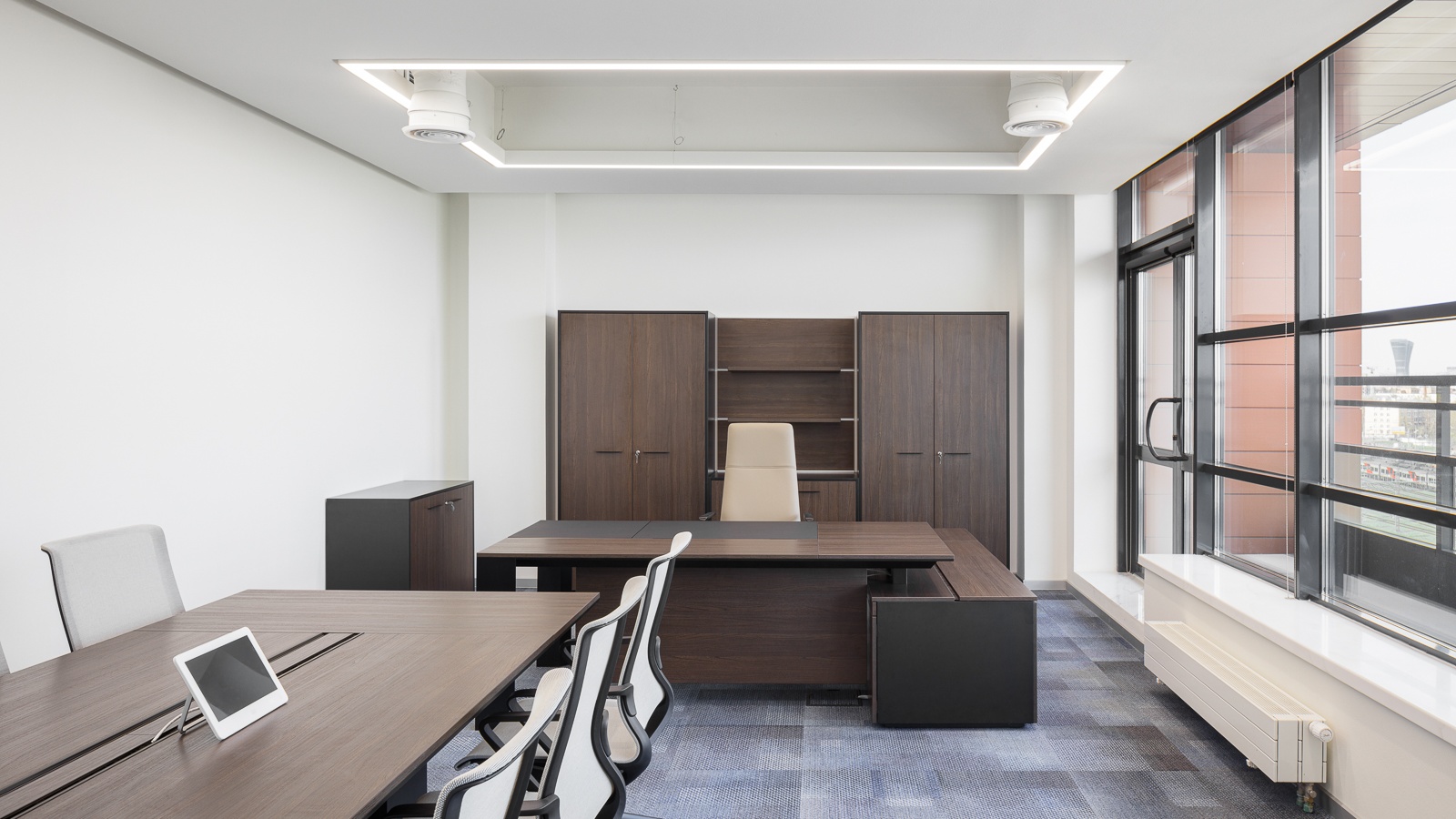 The Concept project covers the 5th and 6th floors of the office: executive and management offices, meeting rooms and classrooms, worksplaces for open space and specialist departments, reception areas on the 5th and 6th floors, dining rooms and coffee points, wardrobe areas and lockers, lounge seating, storage systems. In addition to standard furniture, many non-standard solutions were customized according to drawings: kitchens and bar areas, combined cabinets with perforated facades and overhead units, built-in storage with lighting, wall lamellas, etc.