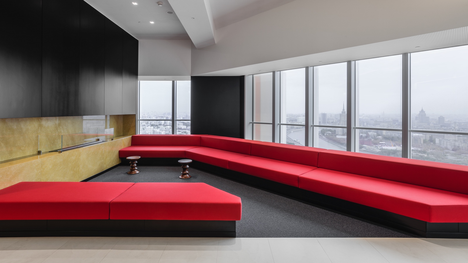 The office of a leading tobacco company is located between 28−32 floors of one of the tallest skyscrapers in Europe Mercury City Tower situated in the Moscow International Business Center.