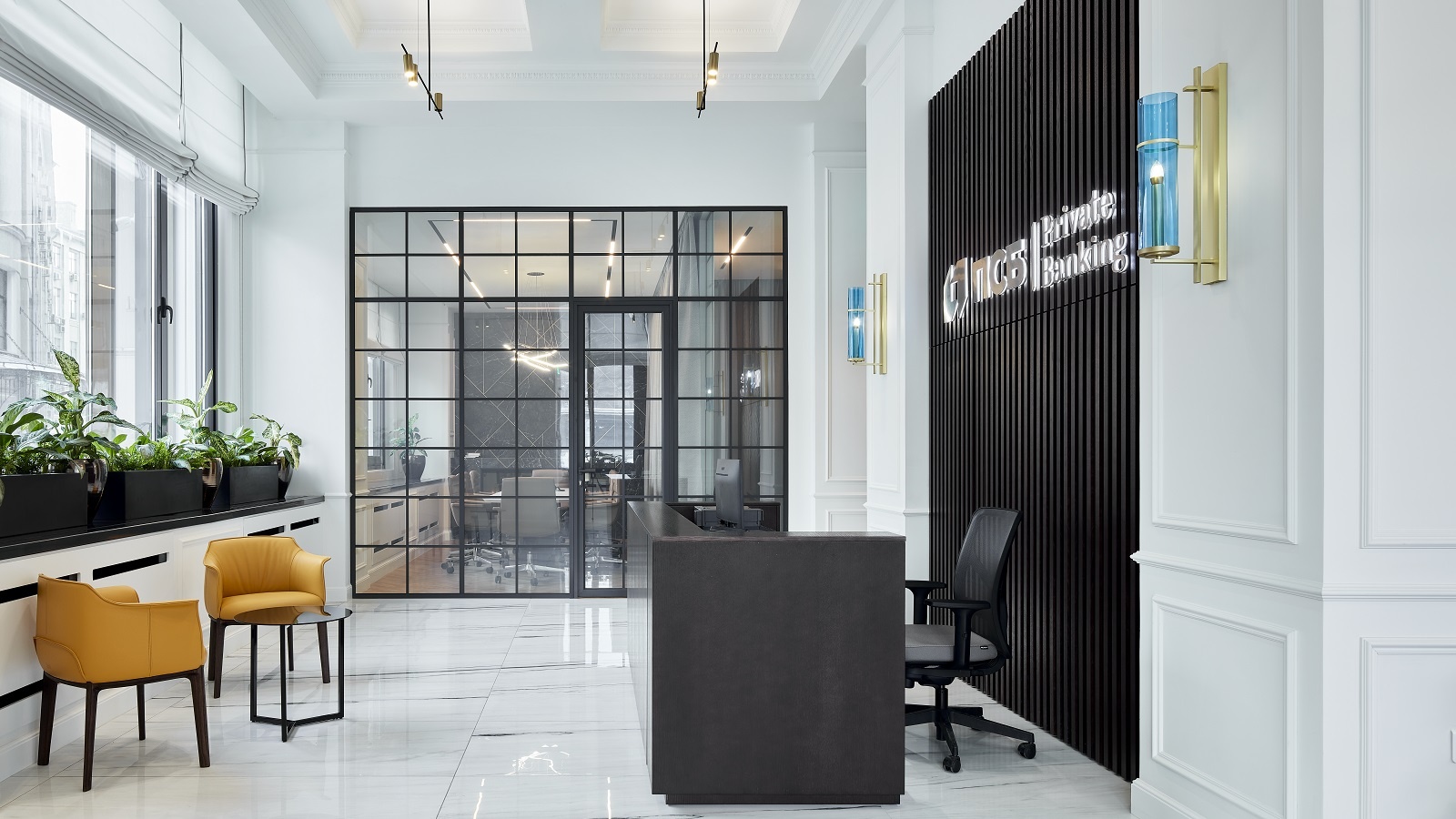 The office has become a beautiful and comfortable space for privileged clients, in which an atmosphere of confidence, reliability and confidentiality has been created. All banking functions are designed in the «concierge» style — they are private, unobtrusive and accessible at the right time.