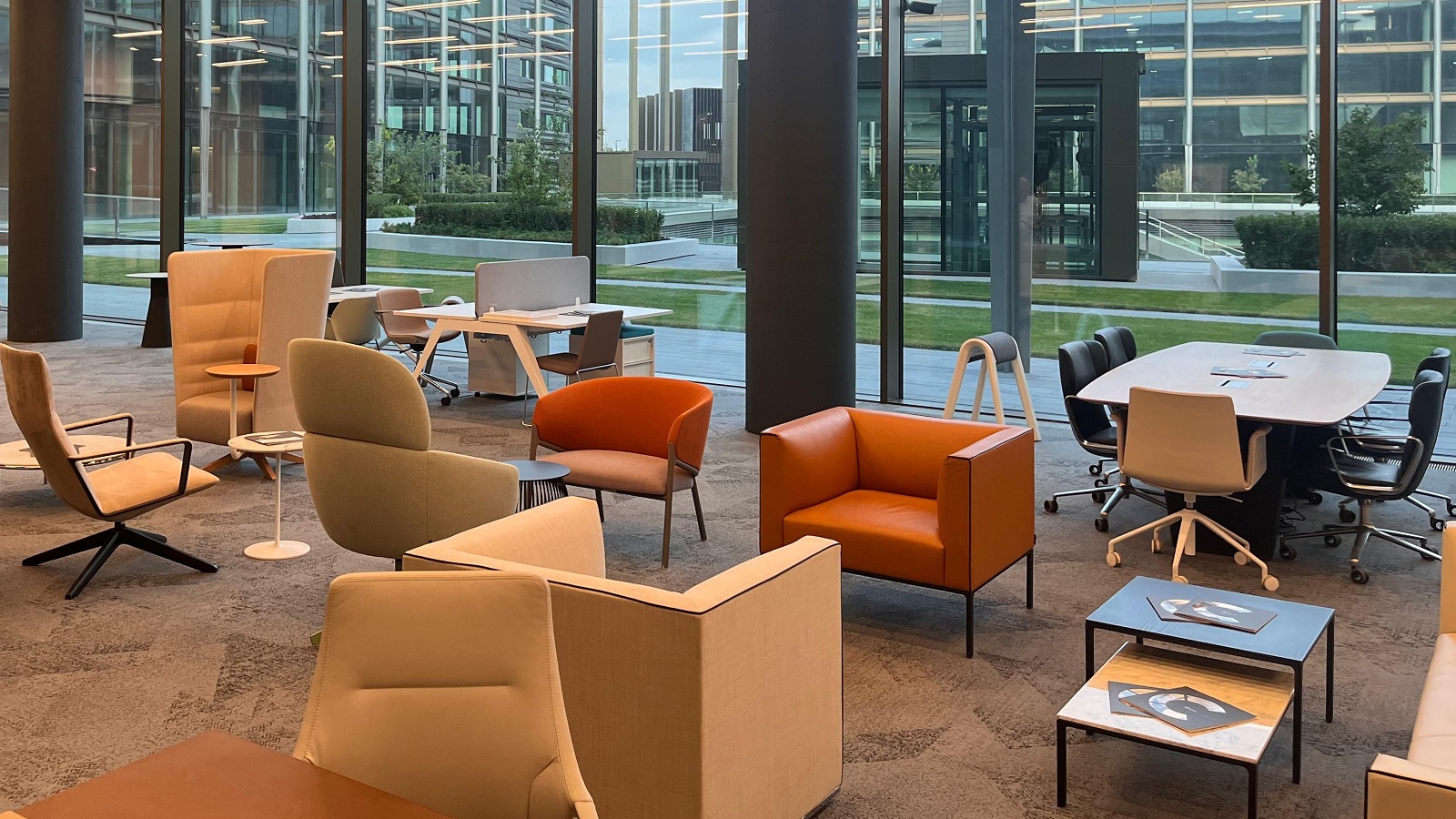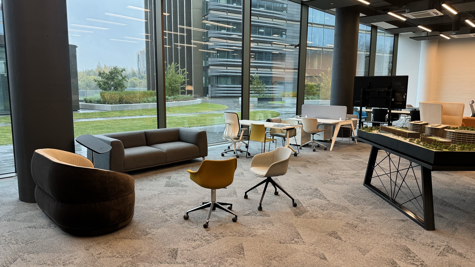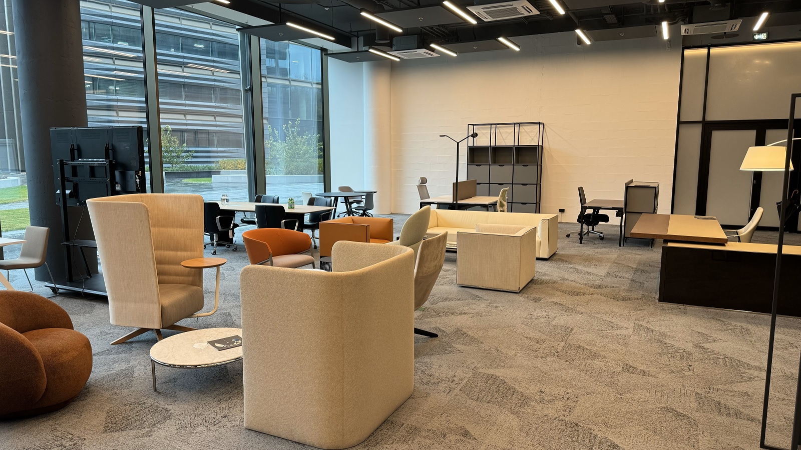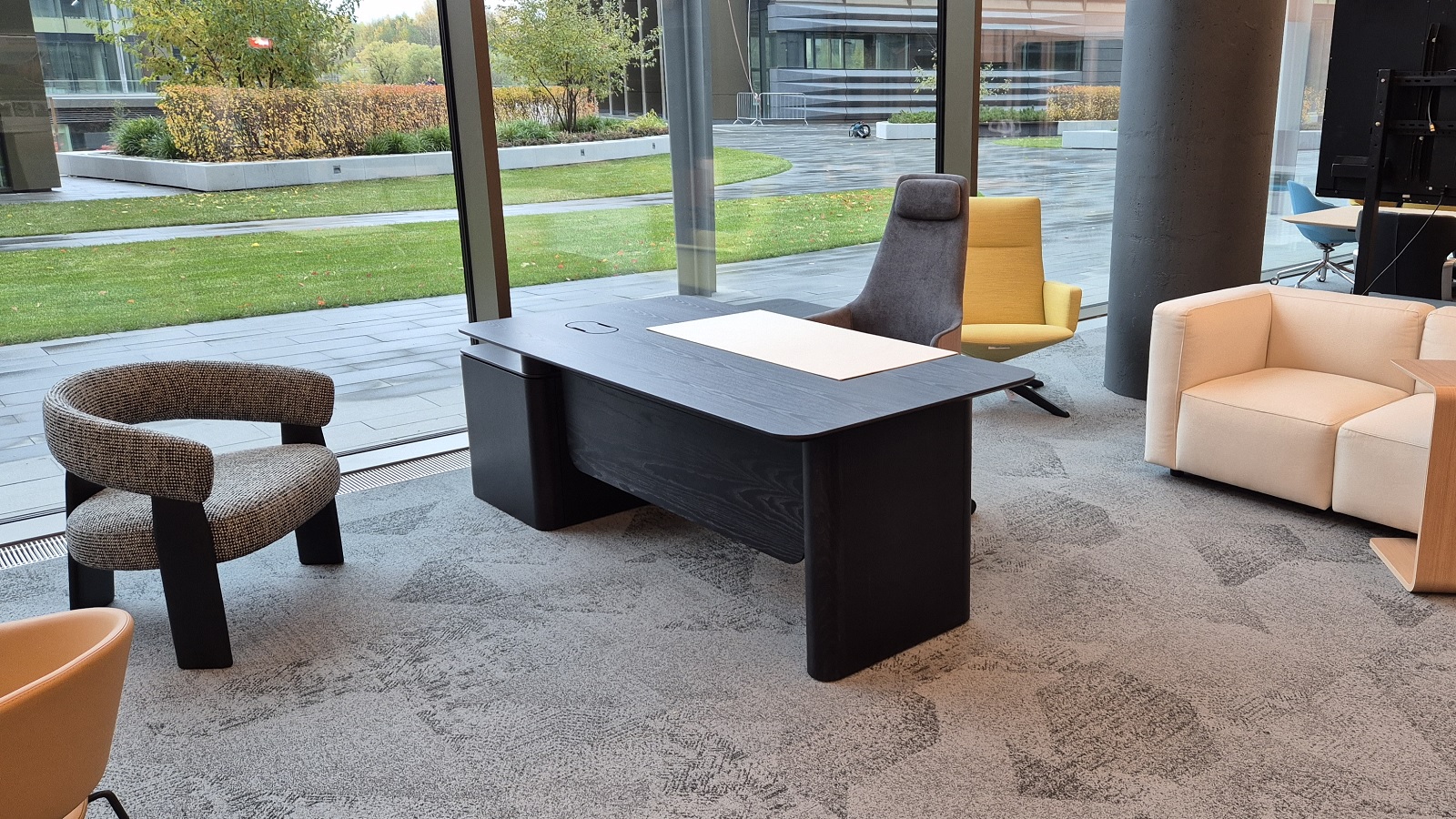 Conveniently located on the 1st floor, with high ceilings and panoramic views of the business district, the spacious and bright Exposition space meets our business tasks. Here we showcase innovations in creating modern interiors; we offer trendy and effective furniture solutions for executive offices, meeting rooms, staff offices (with stationary workplaces, co-working and agile-working areas), lounge areas for informal communication and individual recreation.