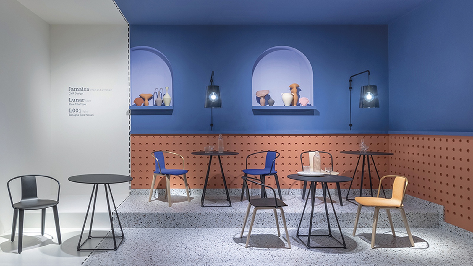 The Jamaica collection of seatings was inspired by Bar Jamaica in Milan’s Via Brera, a legendary hub for intellectuals and artists in the twentieth century. All chairs from the Jamaica line have legs made of mash plywood and the shell, featuring a central lumbar support, that is masterfully paired with the tubular steel backrest, which adds a subtle chromatic element.