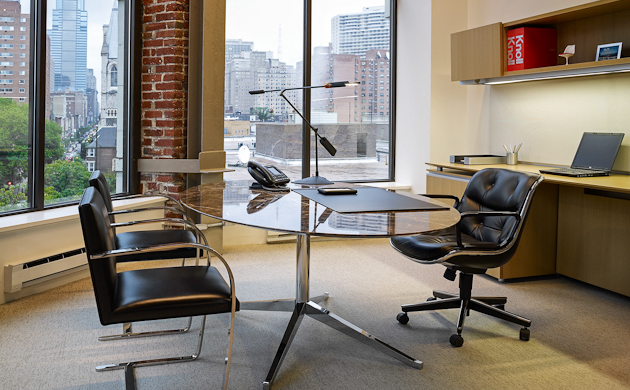 Знаменитое вращающееся кожаное кресло с алюминиевым профилем дизайнера Чарльза Поллока, одно из самых продаваемых кресел в истории, ставшее визуальным символом современного рабочего места и выставлявшееся в Метрополитен-музее в Нью-Йорке и в Лувре в Париже. - Florence Knoll Oval Table Desk