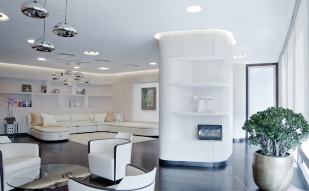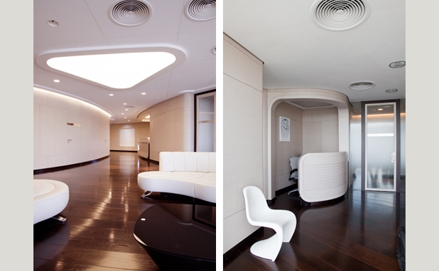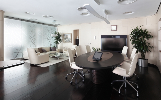 Дизайнеры учли округлую форму башни и разработали оригинальное планировочное решение. Основная идея заключалась в том, чтобы грамотно использовать рабочее пространство и воплотить в дизайне рабочее настроение и корпоративный дух. Концепт оборудовал офис оригинальными элементами, например, специально разработанными для каждого кабинета письменными столами, и лучшими образцами ведущих производителей мебели. Для того чтобы создать яркий и индивидуальный образ офиса, Концепт сотрудничал с более, чем 100 фабриками Европы и Америки.