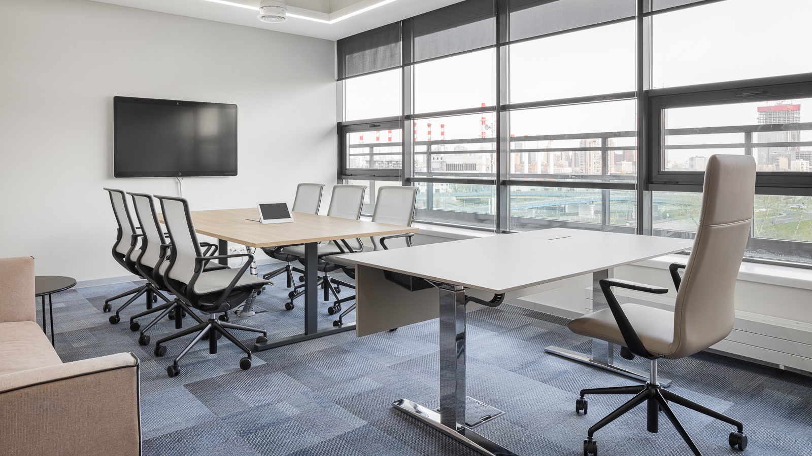 При разработке нового офисного пространства особое внимание уделялось минимизации шумового фона. Для решения этой задачи большая часть рабочих мест оснащена звукопоглощающими экранами, использованы акустические панели и перегородки.