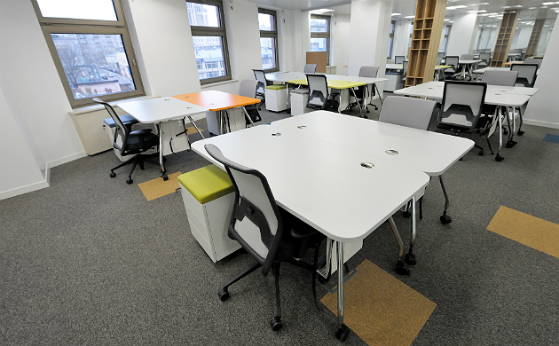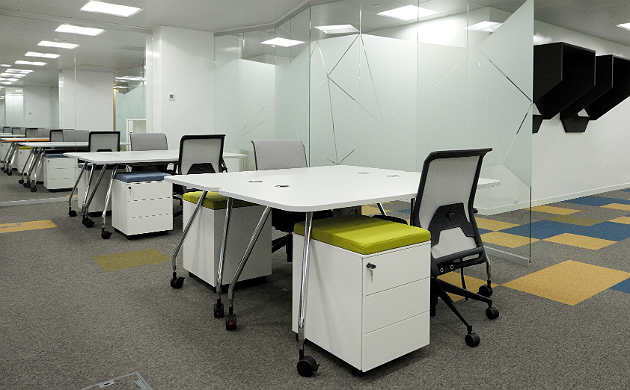 Каждое рабочее место, состоящее из стола, тумбы и кресла может в любой момент «переехать» в другую часть офиса, создавая тем самым комфортные условия для работы над проектами в группах.