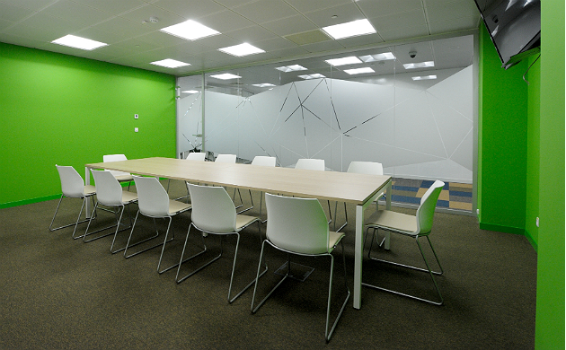 Пространство офиса включает также переговорные комнаты, уютные диваны Alcove от Vitra с высокими спинками, зоны для неформального общения и конференц-зал. Зонирование осуществляется с помощью мобильных перегородок.
