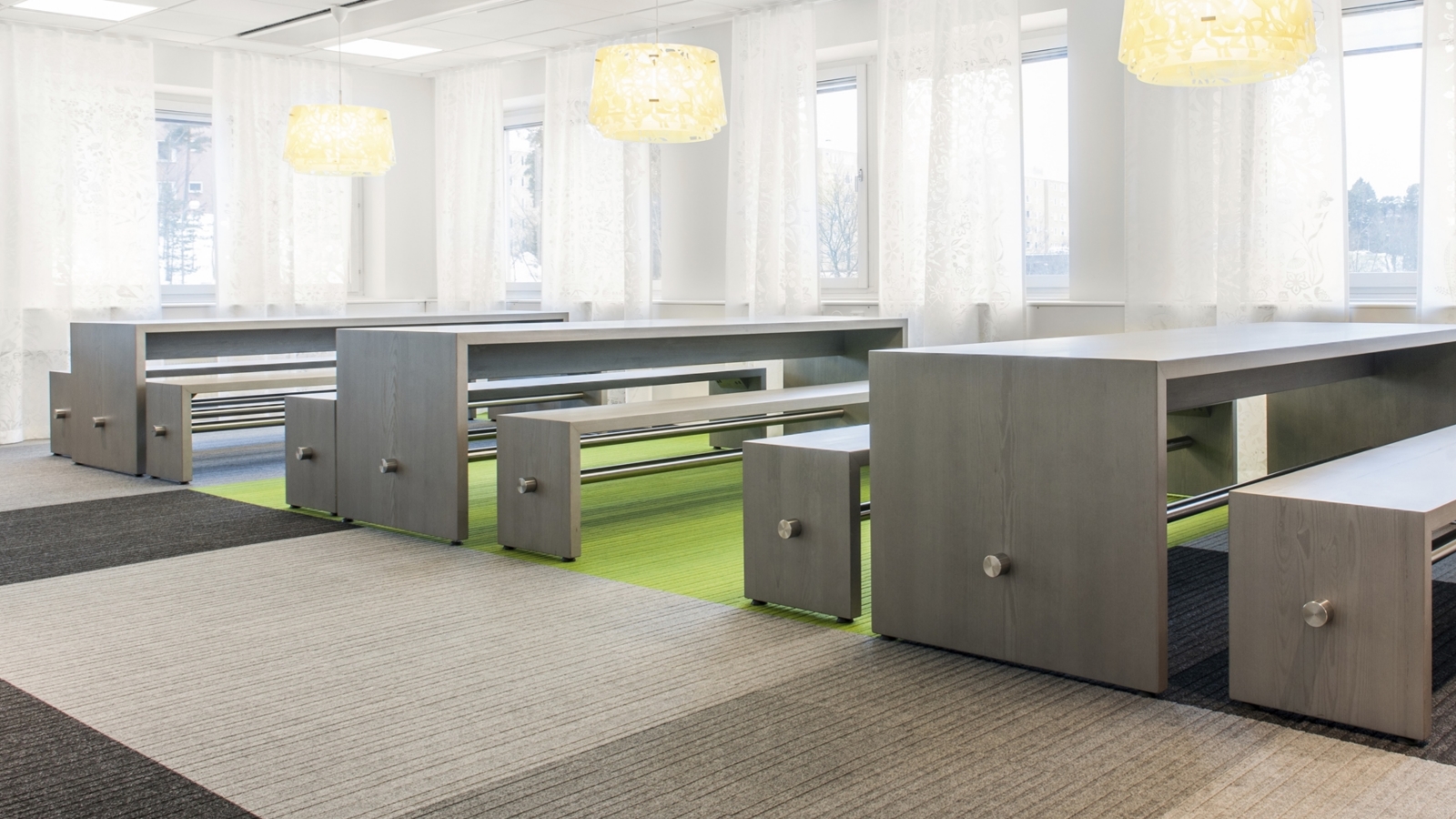 Стол и скамья Ping-Pong могут использоваться в обеденных и переговорных залах. Ping-Pong прекрасно подойдет для офисного пространства отдыха, так как создает комфортную обстановку, располагающую к общению. Коллекция производится шведской мебельной фабрикой Blå Station. Дизайн модели был разработал известным дизайнером Йоханом Линдау в 2001 году.