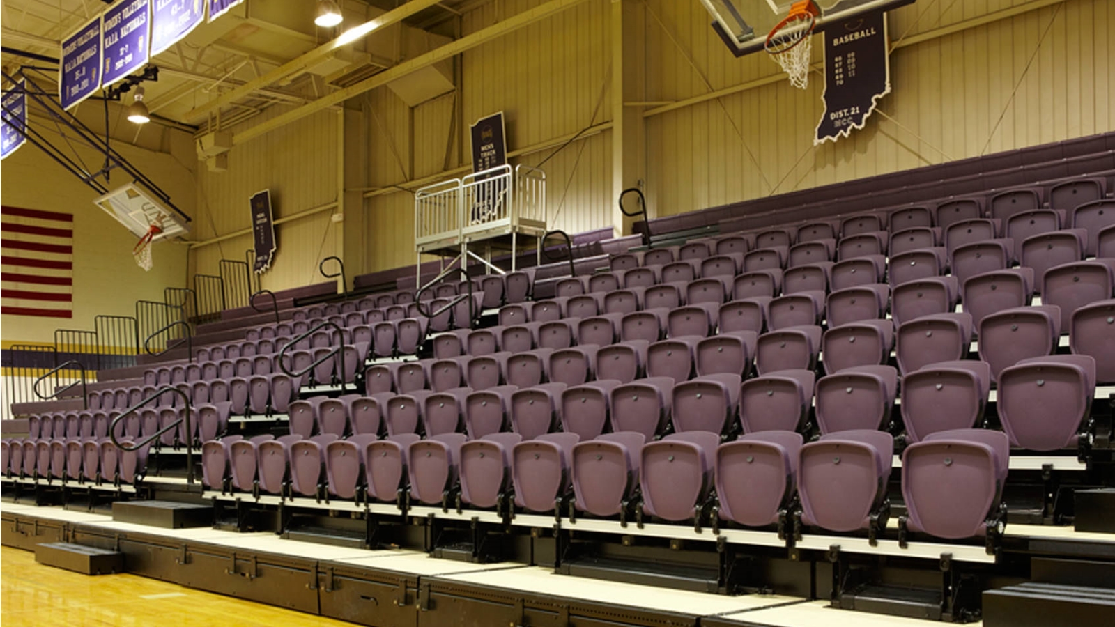 Платформы с системой Dual Rise обладают привлекательным видом и сочетают в себе прочность и комфорт. Они могут использоваться как в спортивном зале или на стадионе, так и в концертном помещении или в аудитории. Телескопические платформы с системой Dual Rise с сидениями премиум-класса используются для размещения болельщиков для таких мероприятий, как баскетбол или хоккей.