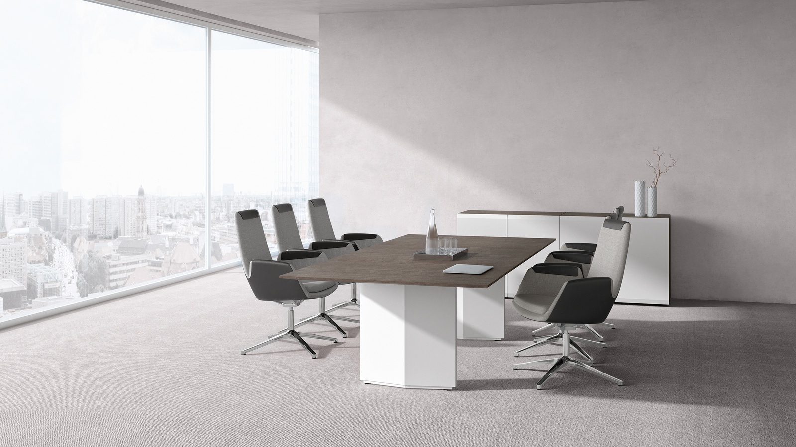 Столы из коллекции Pace, разработанной немецкими дизайнерами Jehs + Laub, отличаются элегантными формами, превосходным качеством исполнения, устойчивостью и увеличенным пространством для ног. Модель регулируется по высоте, столешница представлена в различных размерах и вариантах отделки и шпона.