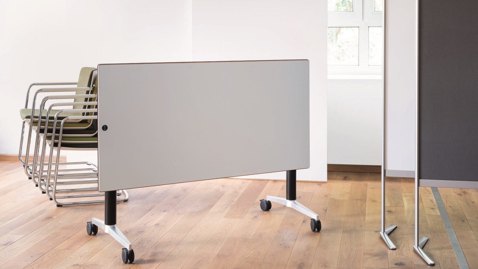 Столы «Timetable Lift» устанавливаются на нужную высоту нажатием одной кнопки. Дополнительное питание от аккумулятора обеспечивает возможность перемещения стола в любое место и независимость от расположения источника питания. Более того, модели со стираемой поверхностью можно легко превратить в мобильный проекционный экран или доску для надписей, просто откинув столешницу.