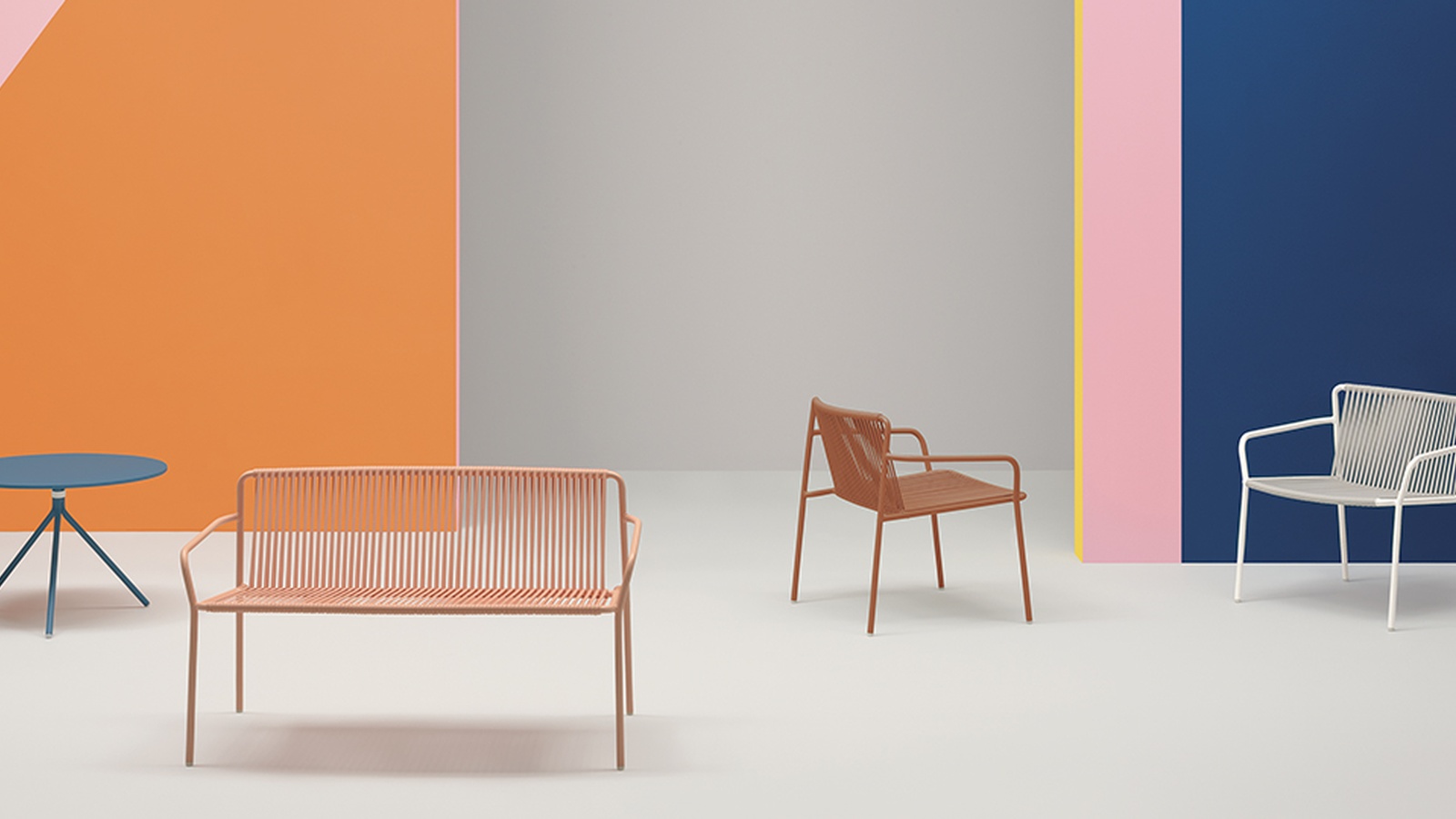 В линейку входят стулья, кресла-лаундж, штабелируемый двухместный лаундж-диван и барные стулья. Все модели из коллекции имеют стальную трубчатую раму с порошковым покрытием для наружного использования, спинку и сидение из вертикально натянутого экструдированного ПВХ с нейлоновым сердечником. Коллекция специально разработана для наружного использования.