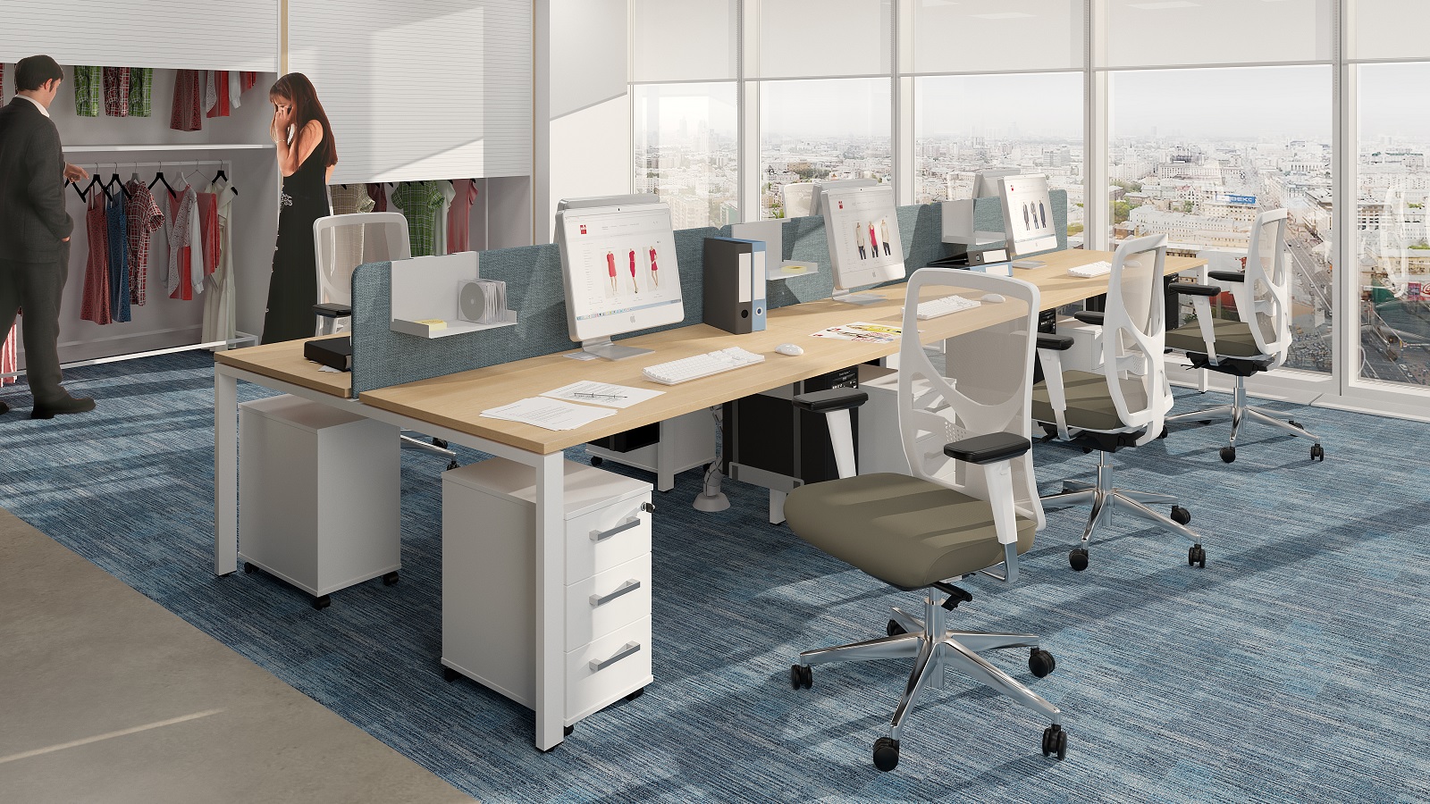Помимо 3D визуализаций, очень удобными для заказчика инструментами являются 3D панорамы и туры по помещению, дающие возможность виртуально поприсутствовать в будущем интерьере. Для демонстрации сложных технологических решений мы выполняем рабочие видео-визуализации: например, прокладка проводов через кабельные лотки рабочего стола или процесс трансформации конференц-зала в многофункциональное пространство, благодаря складной штабелируемой мебели.