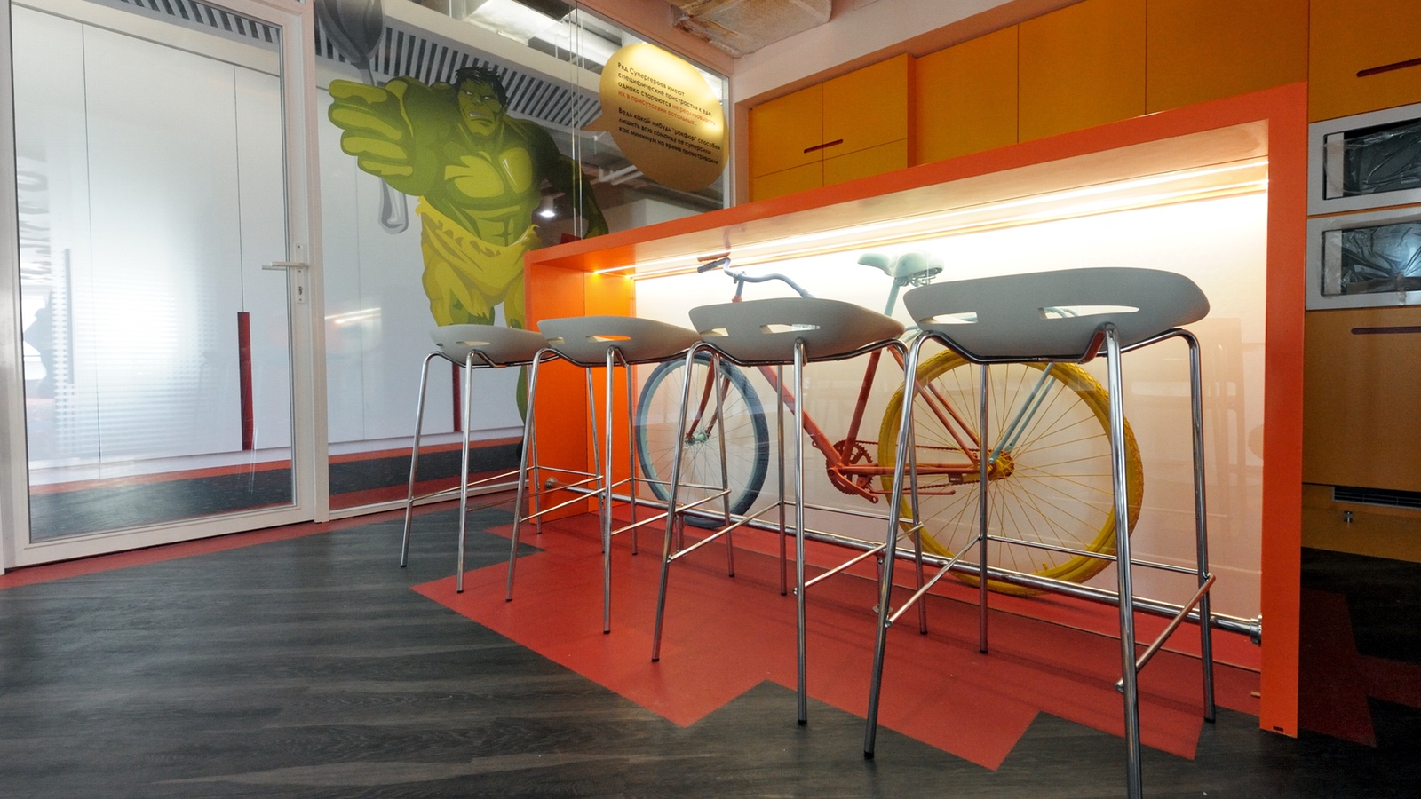 The innovativeness of Alfa-Laboratory is emphasized by the use of superheroes and street art motives in the office design, which are non-traditional for banking sphere. In addition to the open space, the office features multiple soundproof meeting rooms, a convertible conference room, two outdoor terraces and a games area.