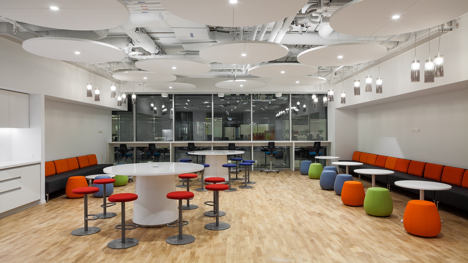 For the interior, it was decided to choose the furniture made by leading European manufacturers: Lammhults, Offect, Materia, Hay, Pedrali, Arper, Karl Andersson Soner, Kartell, and Flokk.