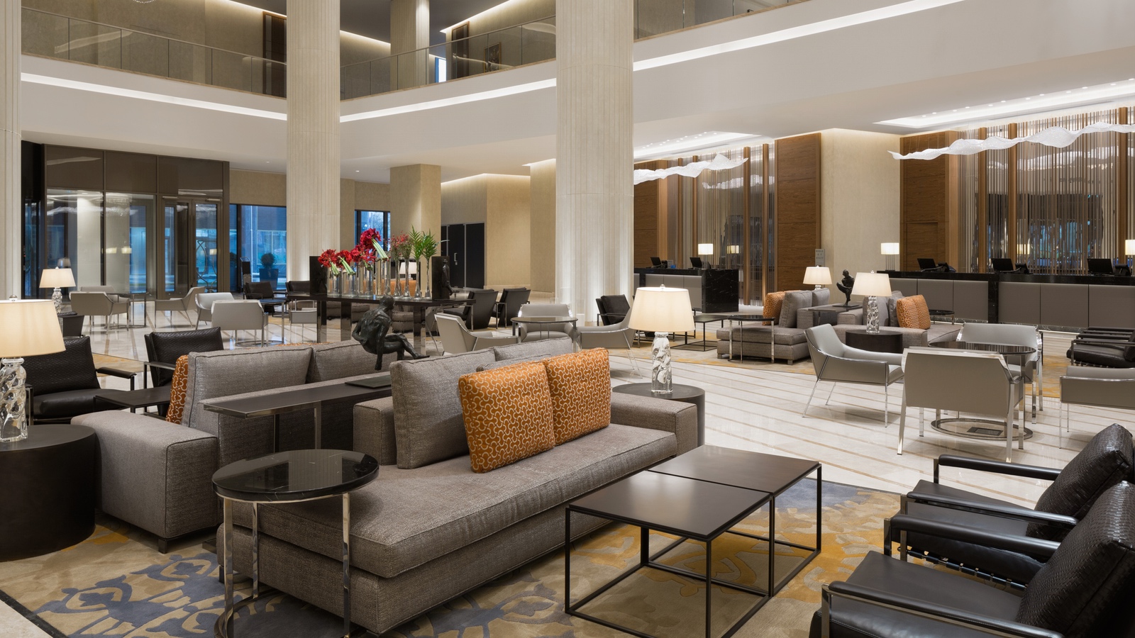 The architectural studio SPEECH led by Sergei Tchoban designed the hotel interior. The furniture and interior design items supplied by Concept are manufactured by Poltrona Frau, Baxter, Minotti, HollyHunt, CattelanItalia and other well-known manufacturers.