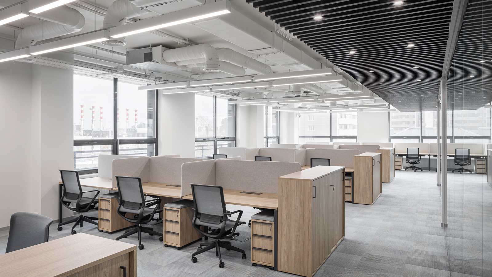 When developing the new office environment, high attention was focused to minimizing the background noise. To solve this problem, most of the workplaces are completed with sound-absorbing screens, as well as acoustic panels and partitions are used.