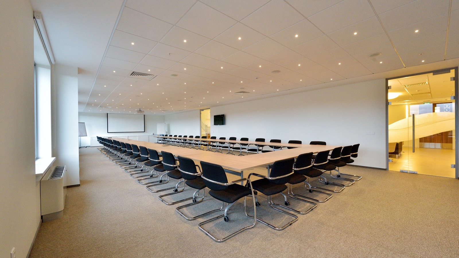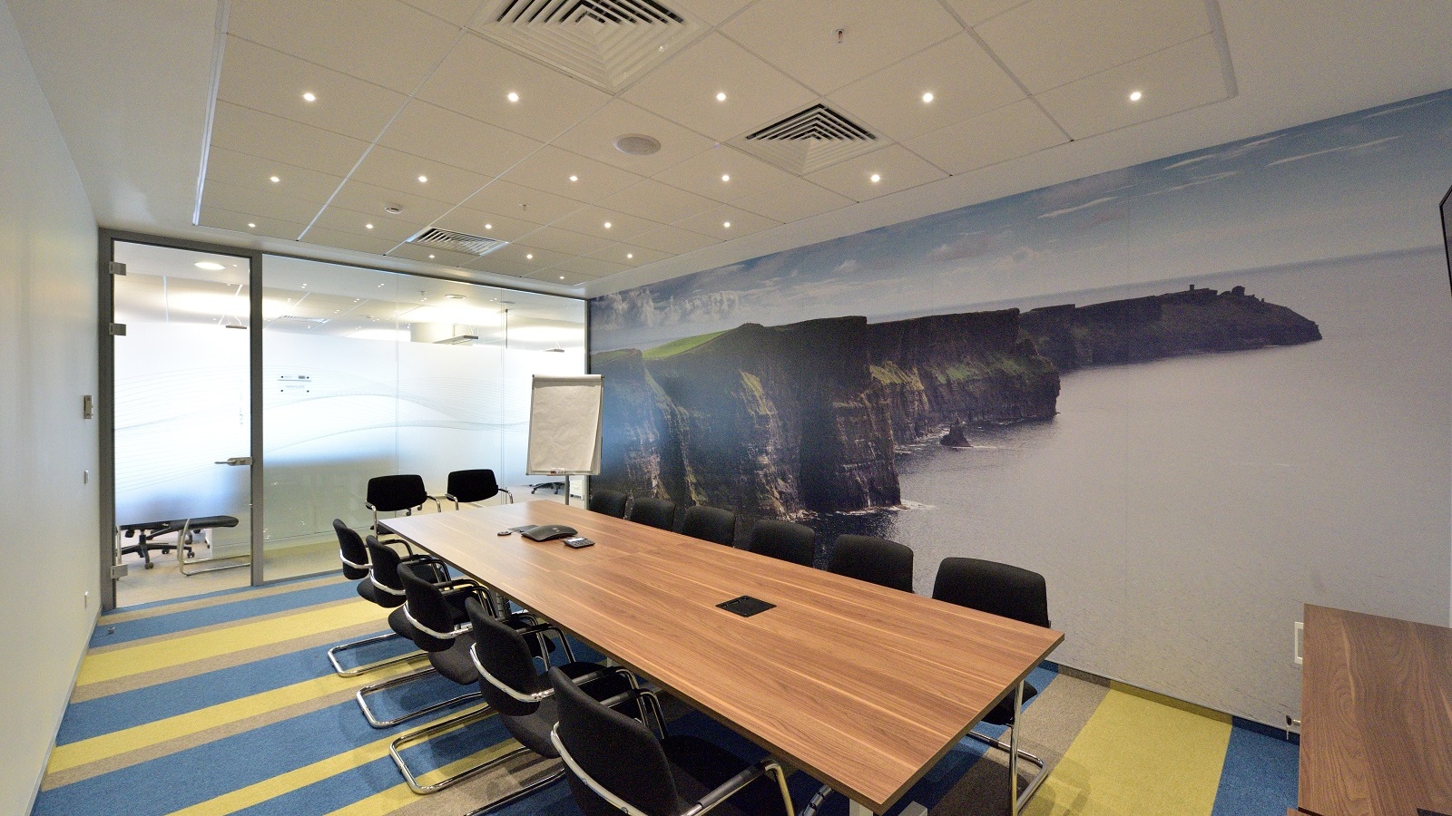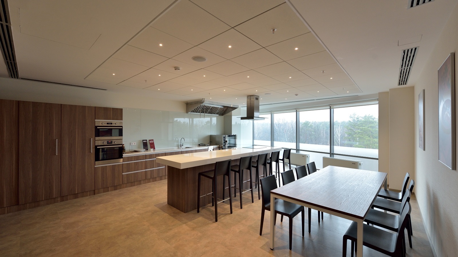 Kerry was founded in Ireland. In order to reflect the national roots of the brand in the design, it was decided to decorate the conference room with a large panel depicting the famous Mohair Rocks — one of Ireland’s most spectacular sights. The photographs of food, emphasizing the scope of the company, are placed on the walls of the kitchen, meeting rooms, and other areas. For the project, it was decided to select various models from the Lithuanian factory Narbutas as well as furniture from local manufacturers.