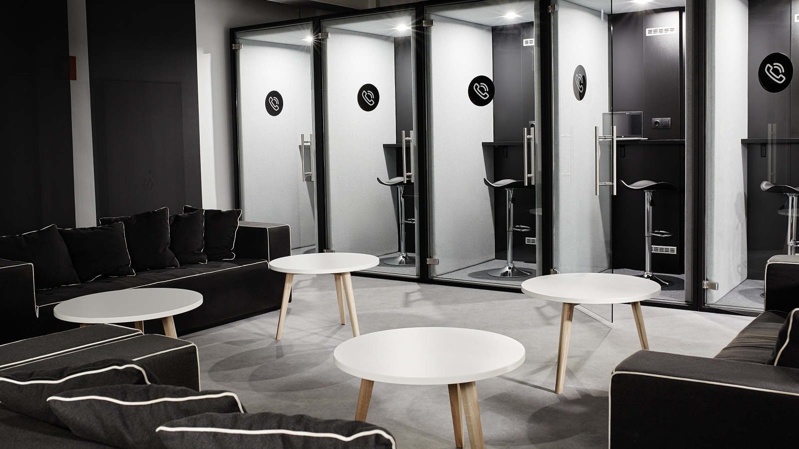 Concept supplied office chairs, tables, coffee tables, and sofas with high backs from the following manufacturers: Rexsitt, Segis, Gaber, Andreu World, Noti, Midj, and ICF.