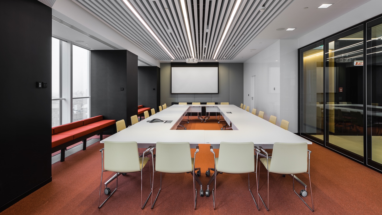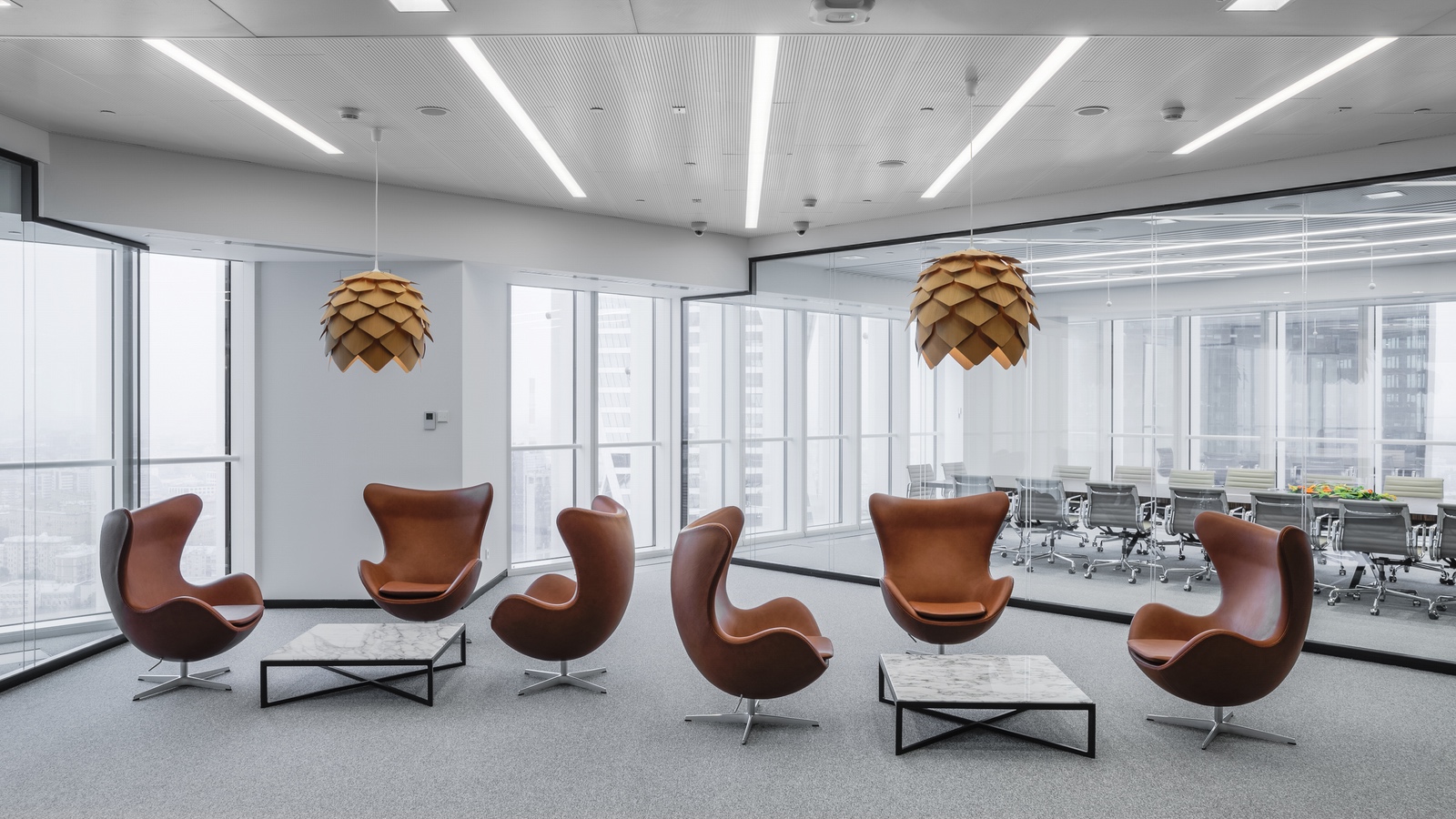 The office of a leading tobacco company is located between 28−32 floors of one of the tallest skyscrapers in Europe Mercury City Tower situated in the Moscow International Business Center.