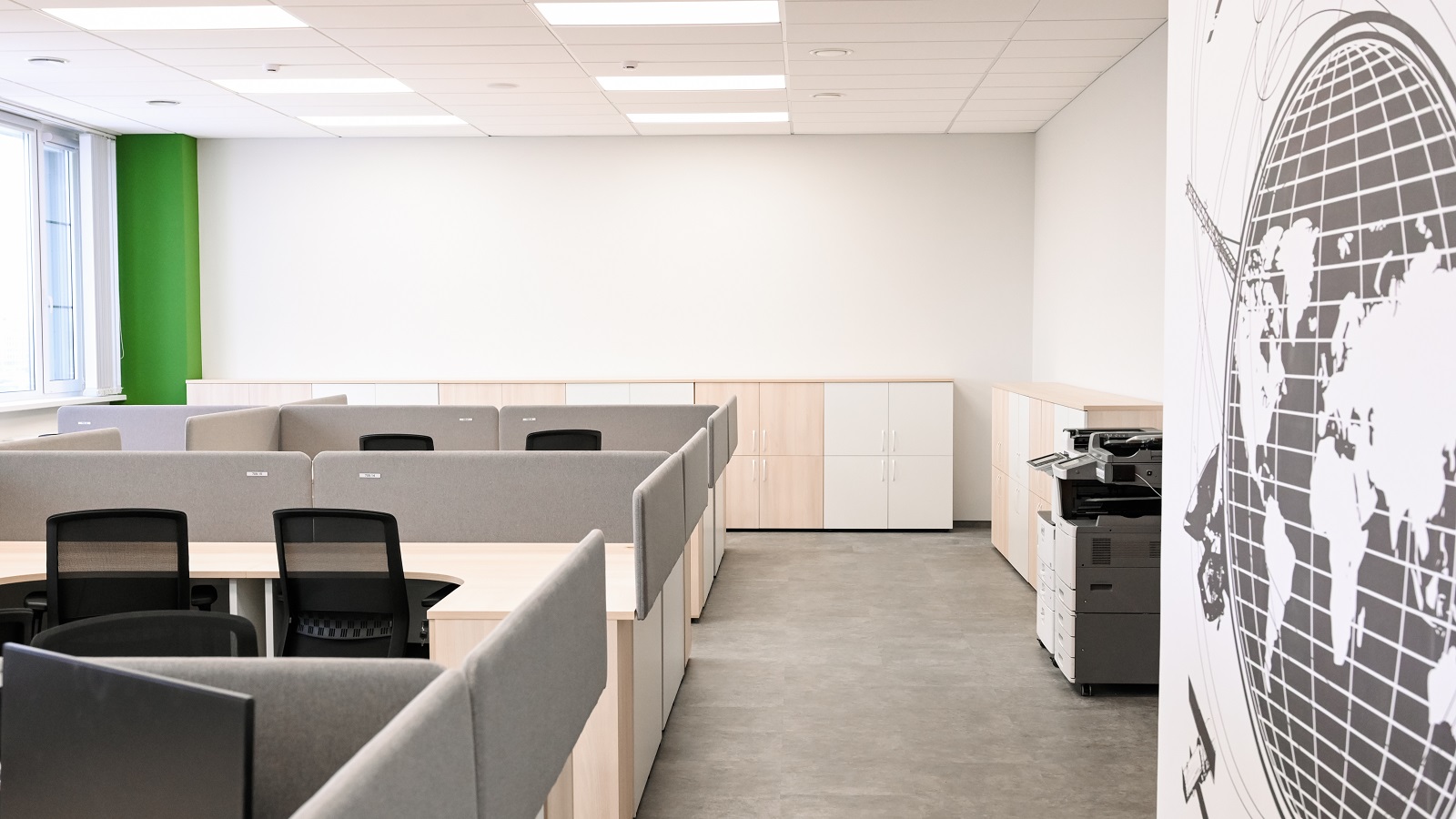 The complexity of the project was the realisation within a short time frame. It was fulfilled despite the difficulties in furniture factories due to the shortage of materials under conditions of the pandemic. In addition to the standard furniture of European and Russian manufacturers, the project includes customized tables and storage systems made according to the drawings of the architects on the part of the customer. The high-sound-proofing acoustic cabin and the reception desk are also the bespoke products.