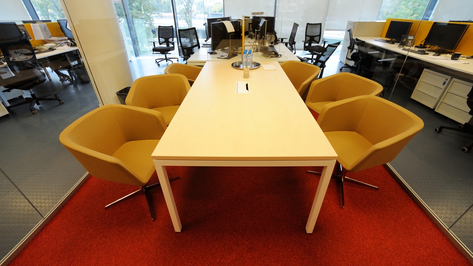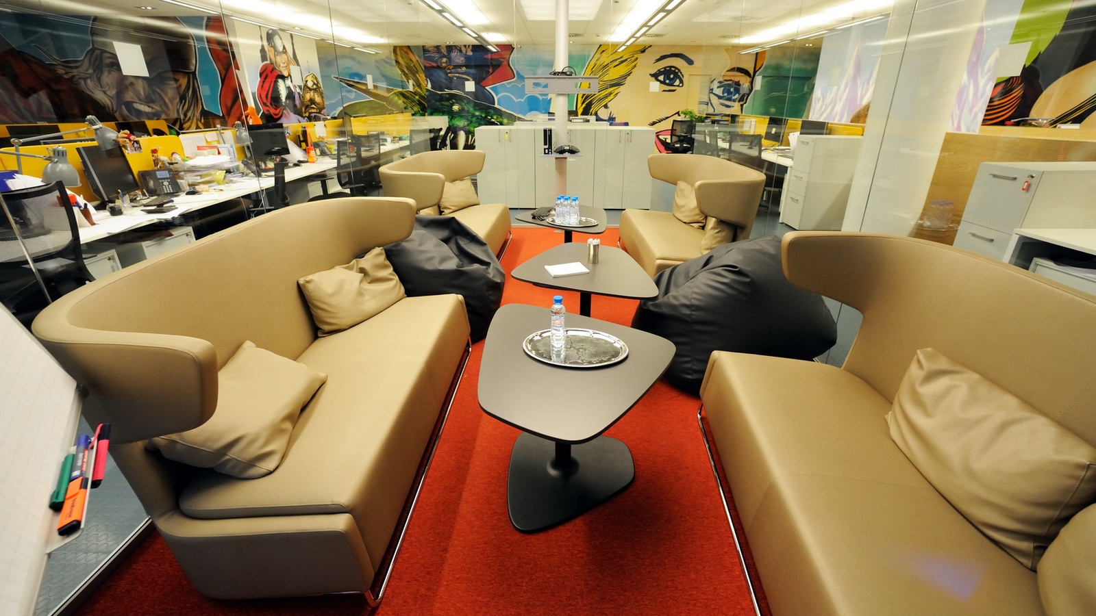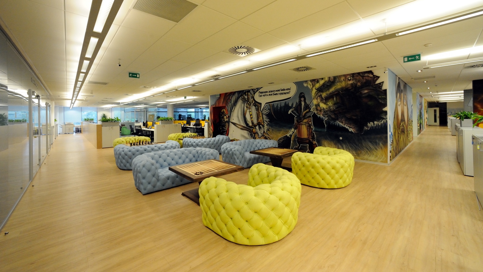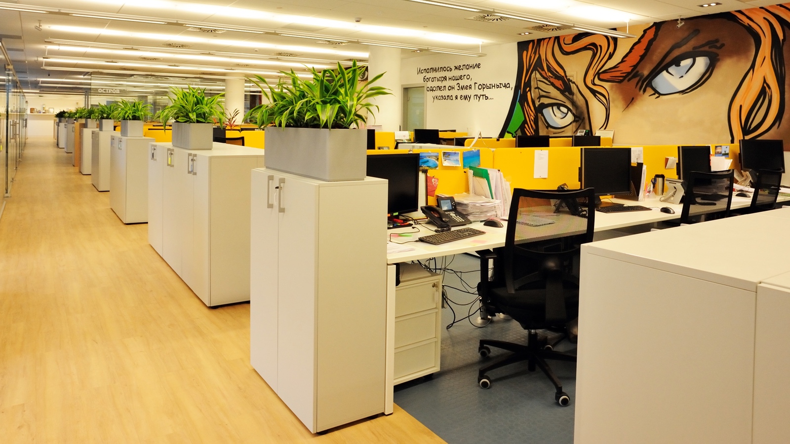 Office of the bank Tinkoff Credit Systems placed in one of the buildings of the prestigious business complex «Olympia Park» is decorated in bold and bright style. This office represents an open space for 400 employees, meeting rooms with glass walls and spacious seating areas for informal communication.