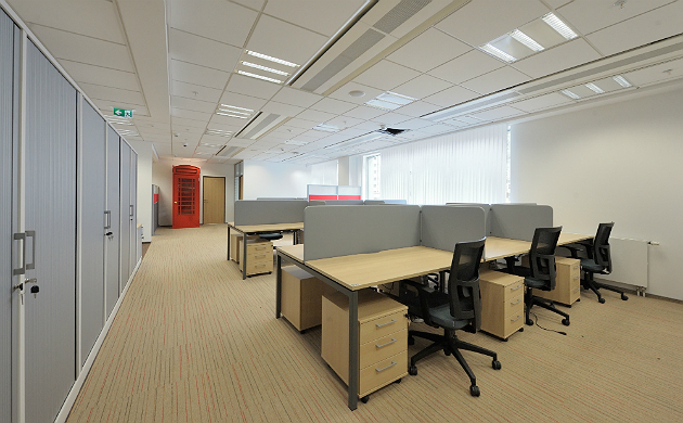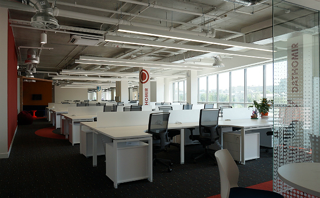 Новый офис Альфа-Банка общей площадью более 23 тысяч квадратных метров рассчитан на 2500 сотрудников. На каждом этаже расположены рабочие зоны, спланированные по принципу open space, а также переговорные комнаты и кофе-поинты.