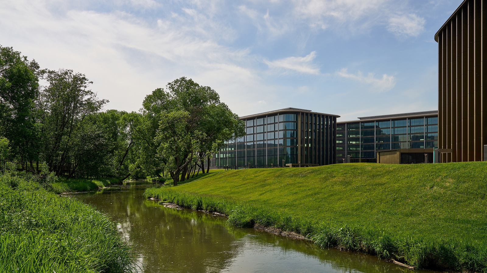 The «Skolkovo Park» Business district — a large-scale project in the west of Moscow of a class «A» business park on an area of more than 10 hectares, including office buildings, event spaces, shopping galleries, parking, a landscaped area with a cascade of ponds. The concept of the project is «business lives here», which implies a modern well-thought-out infrastructure for life, work, recreation and personal growth.