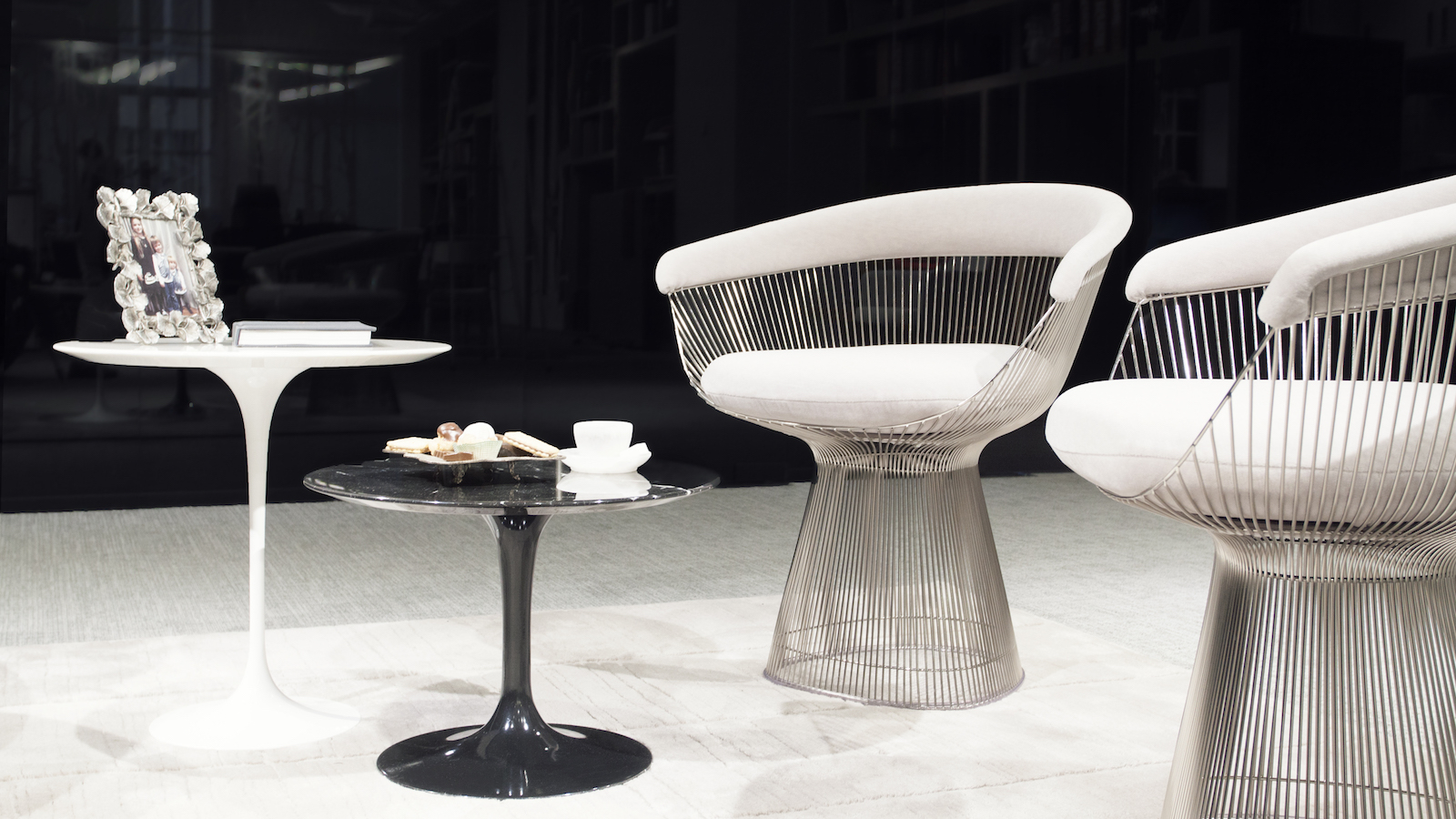 The equally legendary Platner chair was designed by Warren Platner in 1966. The unusual innovative design and sculptural harmonious forms make the collection unique and memorable.