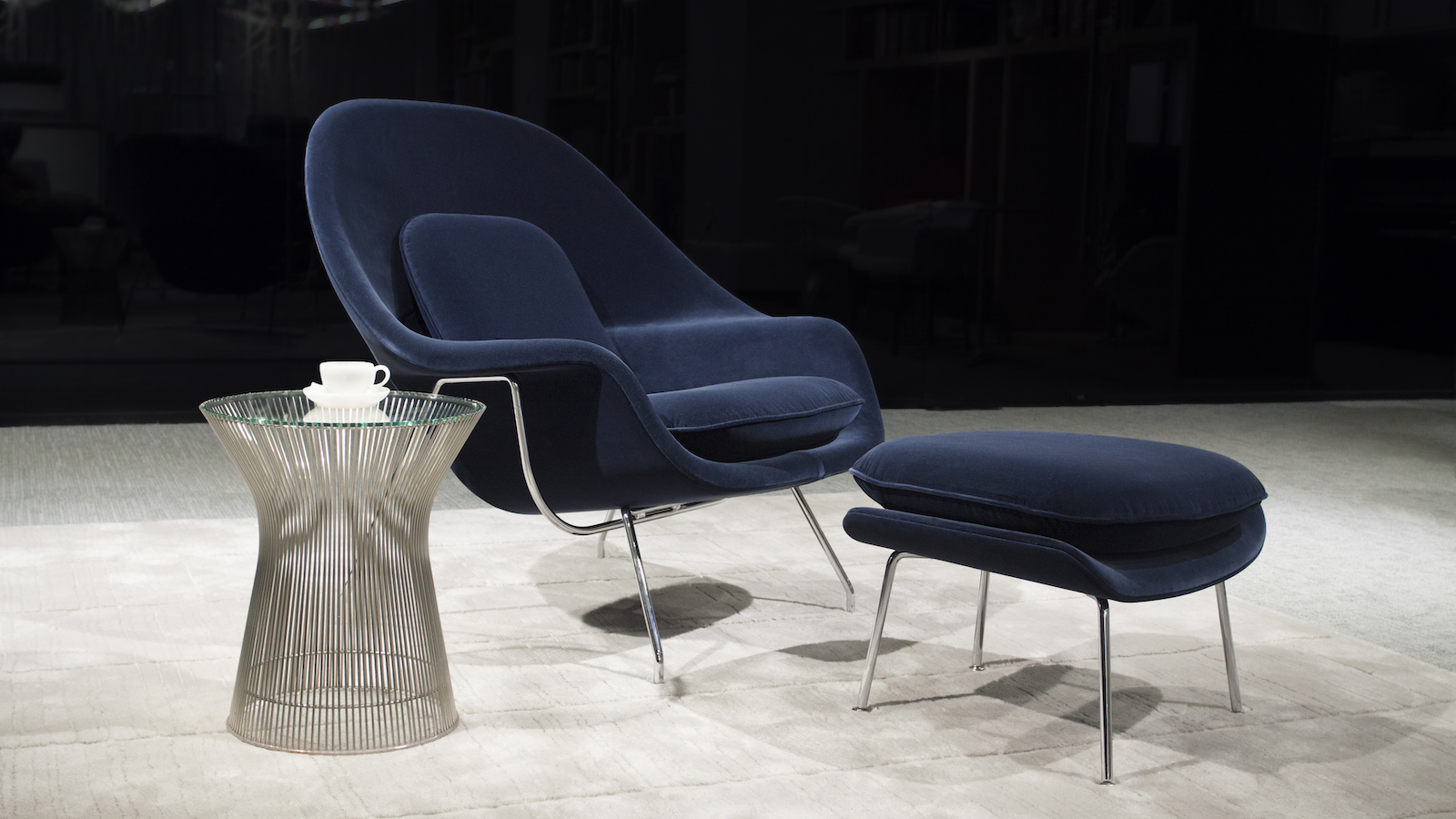 The Womb chair was created by Eero Saarinen in 1948. The armchair, which resembles a comfortable basket of pillows, was designed by Florence Knoll and has become a recognizable icon of American modernism.