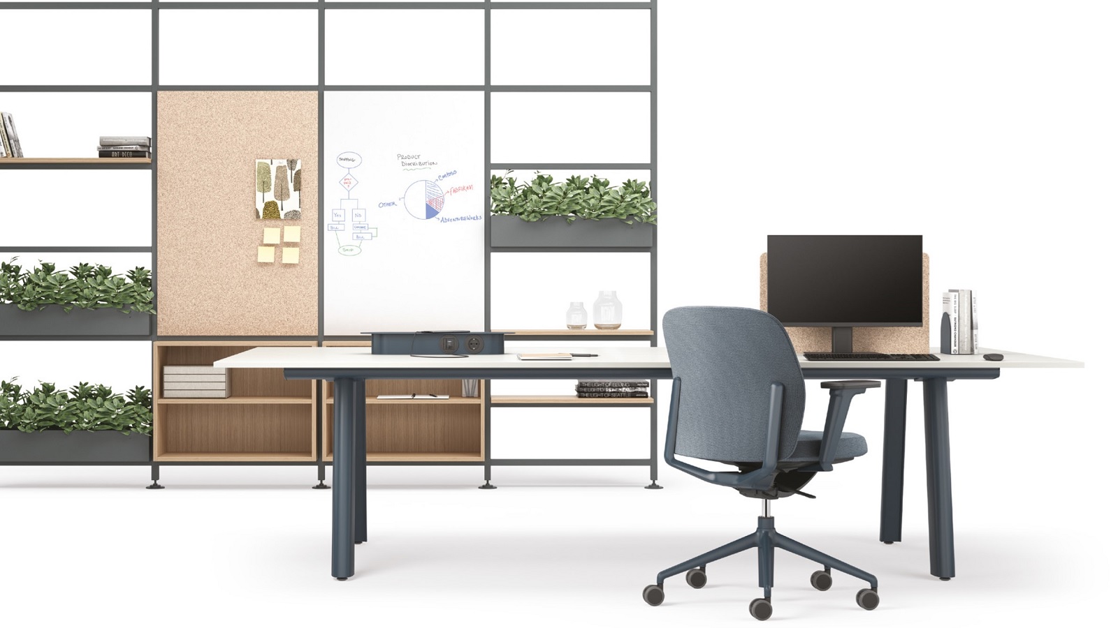 Qadro is a multifunctional space zoning system designed to create an easily adaptable work environment. Mobile and fixed partitions and shelving units provide privacy and a dedicated work area without the use of permanent walls.