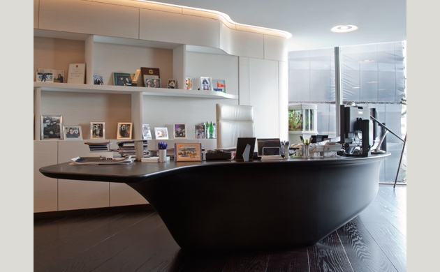 Дизайнеры учли округлую форму башни и разработали оригинальное планировочное решение. Основная идея заключалась в том, чтобы грамотно использовать рабочее пространство и воплотить в дизайне рабочее настроение и корпоративный дух. Концепт оборудовал офис оригинальными элементами, например, специально разработанными для каждого кабинета письменными столами, и лучшими образцами ведущих производителей мебели. Для того чтобы создать яркий и индивидуальный образ офиса, Концепт сотрудничал с более, чем 100 фабриками Европы и Америки.