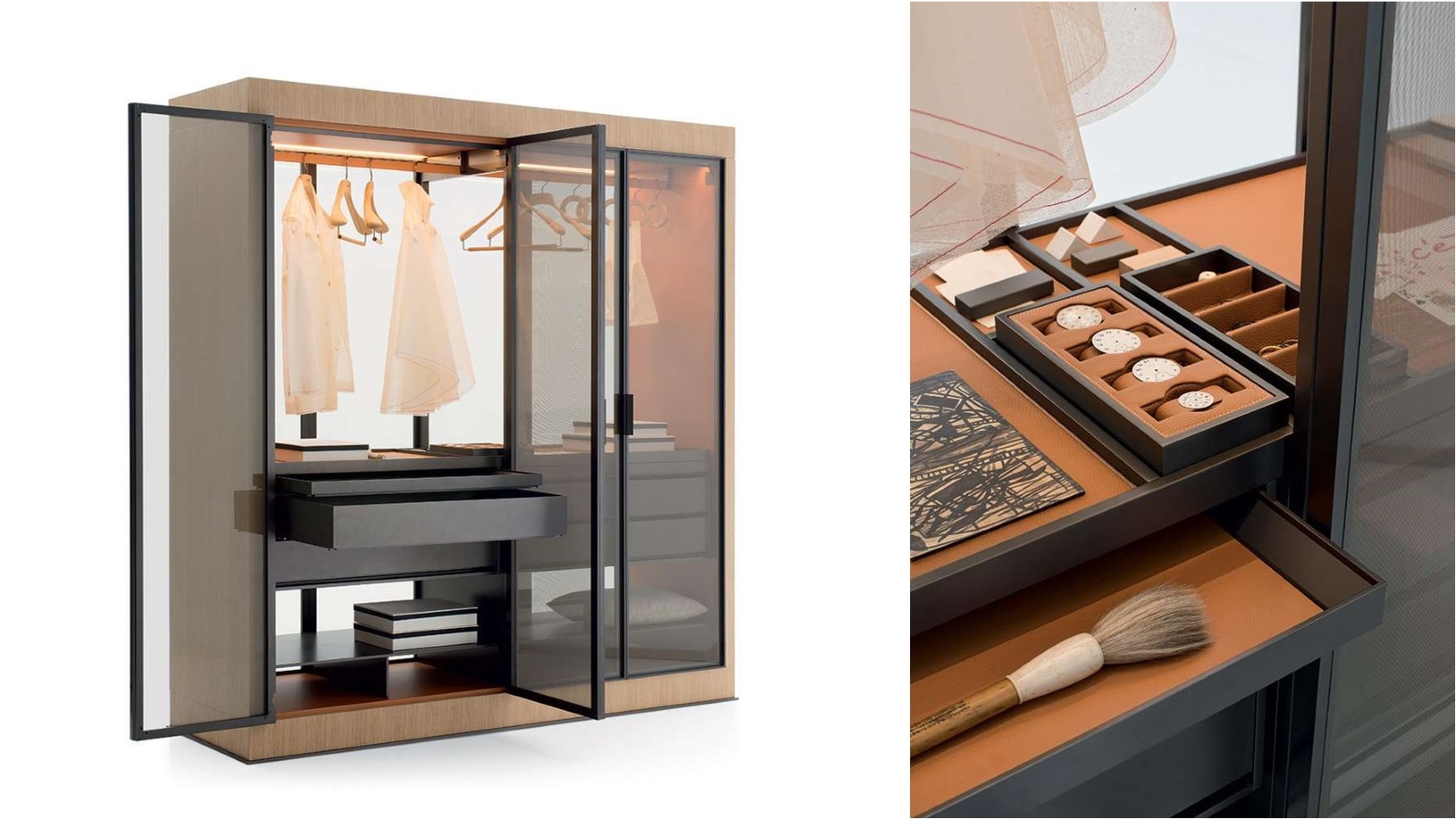 The most popular wardrobes made by the B&B Italia company are Backstage and Eracle for bedrooms, both designed by Antonio Citterio.