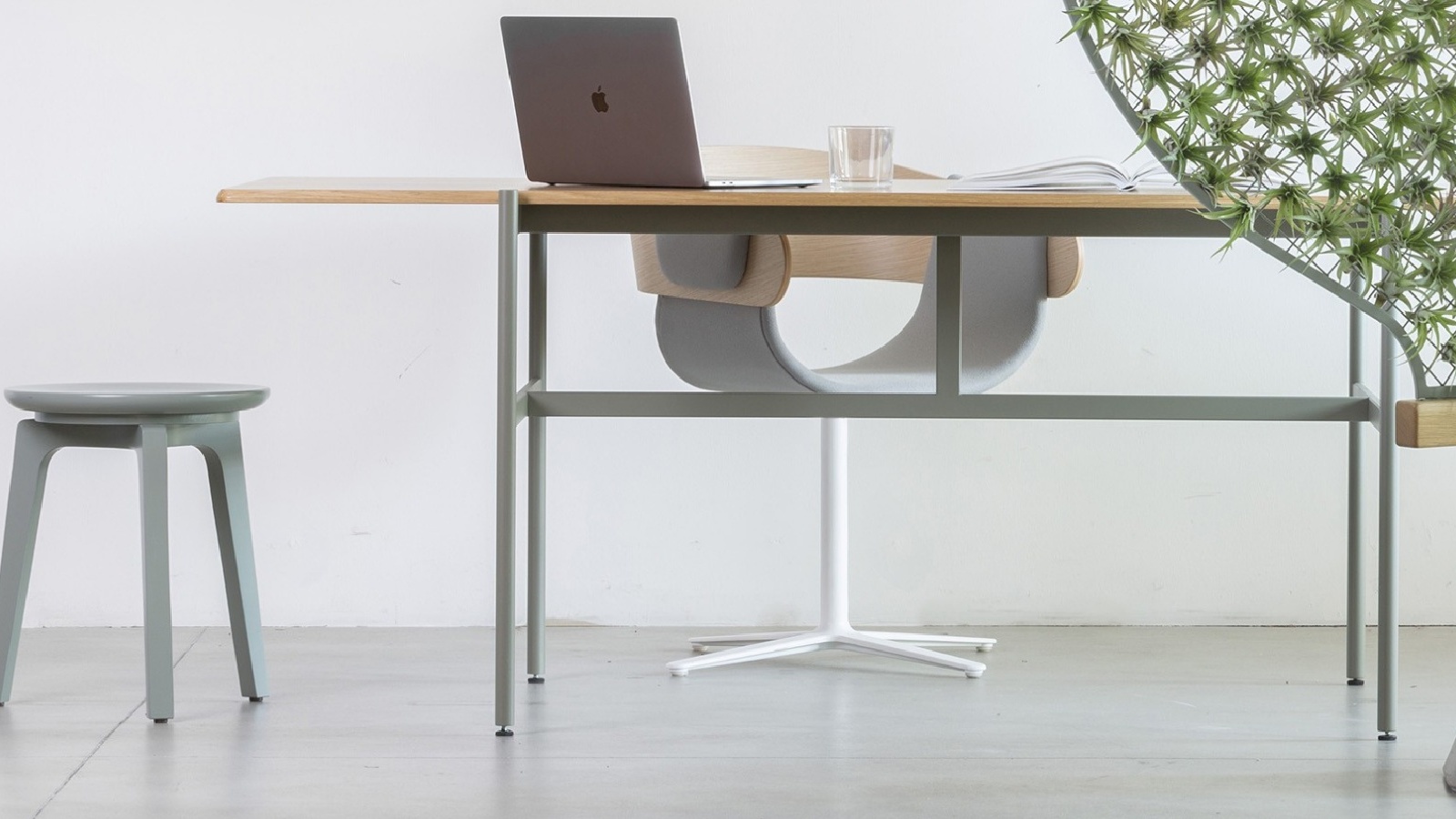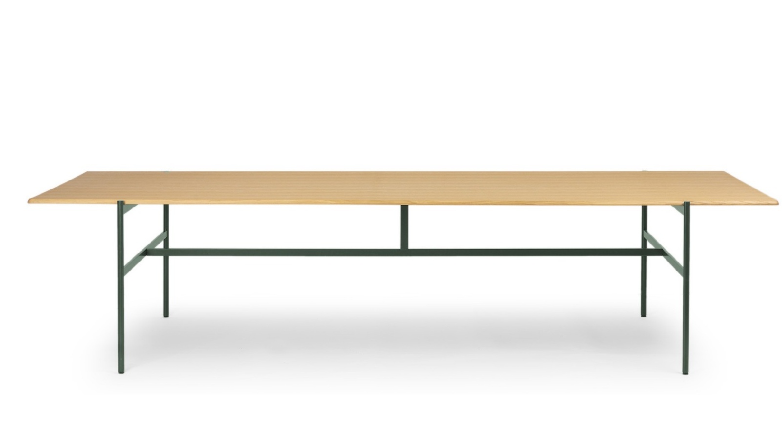 The models have a smooth top in solid wood or black varnished glass with a soft shape and edges. The profile looks natural, thin and sharp at the same time; this creates an apparent contrast between the massif look of the material and its thin shape. The supporting structure in varnished metal, generated by the very same search for lightness, is inspired by traditional operative drawing and work tables.