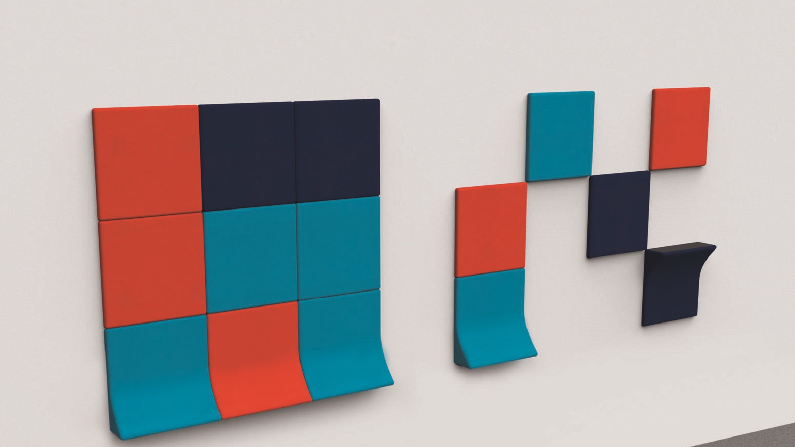 Landing consists of two basic sound-absorbent modules: a flat one 60×60 cm in size with an element upholstered with 10-mm-thick foam and covered in fabric and an equally large three-dimensional moulded relief element. The second module can be used in three ways depending on the way it’s fitted: as a shelf (with an additional powder-coated steel surface), rotated vertically by 90° as an upright method of creating a zone, providing a screen or a cozy corner for leaning on and turned 180° horizontally to perch on.
