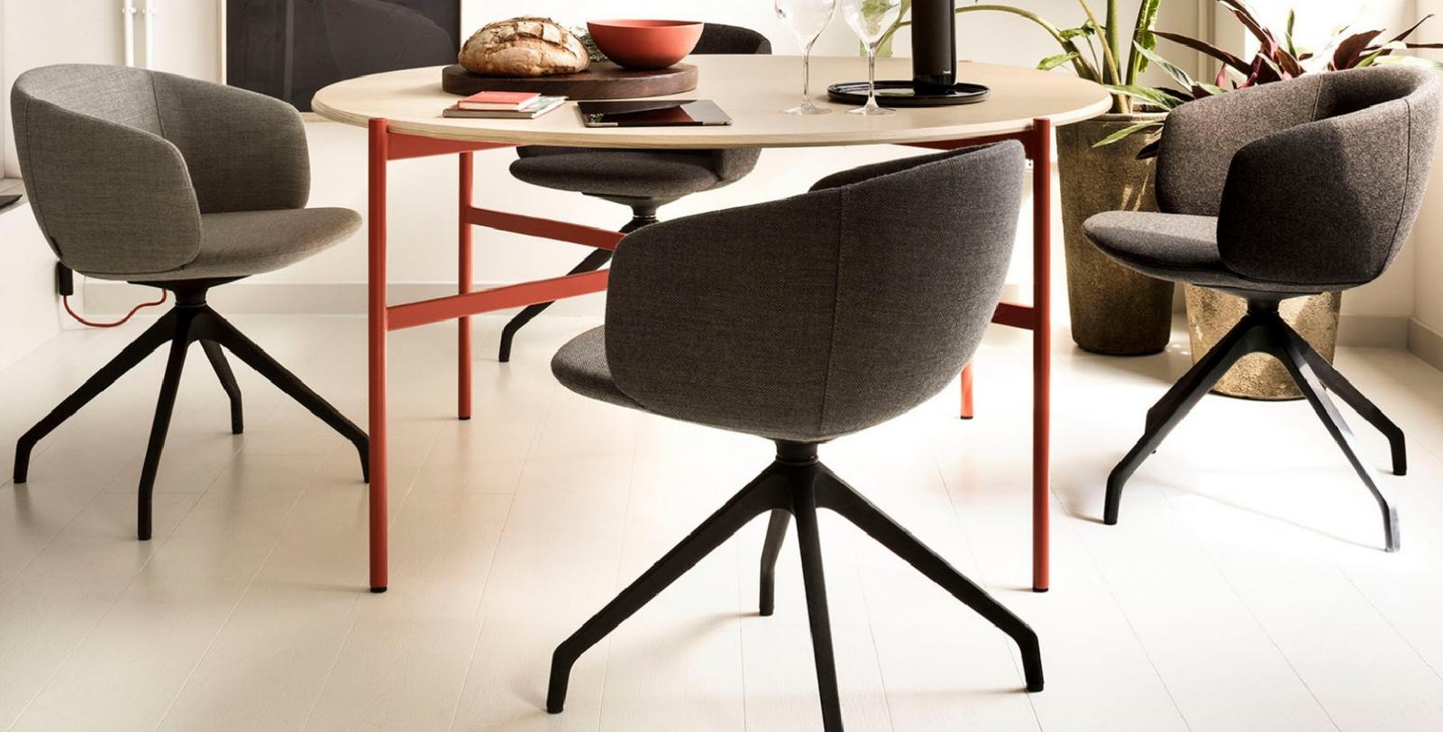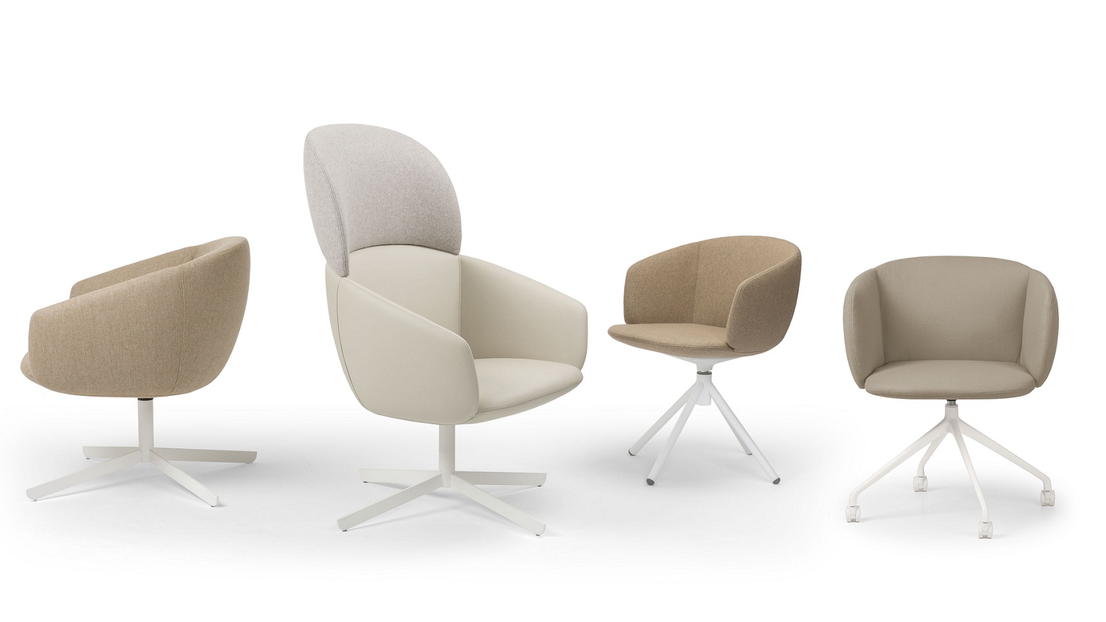 The Not family of seats is characterized by a large enveloping shell and an elegant and versatile look. The stitching defines and designs the soft lines, providing an elegant and versatile look. The Not collection is available in several options with different backrest heights and with the option of a revolving base and an extra ottoman as well.