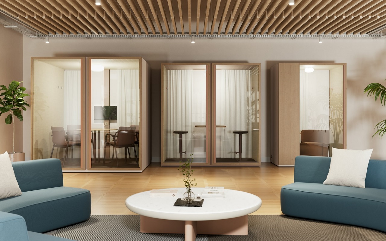The most sought–after acoustic solution today is acoustic booths, compact soundproof structures that effectively cut off external noise and retain sound inside, creating an ideal acoustic space. Acoustic booths are used in any public places where privacy is required for telephone conversations, individual work or private meetings.