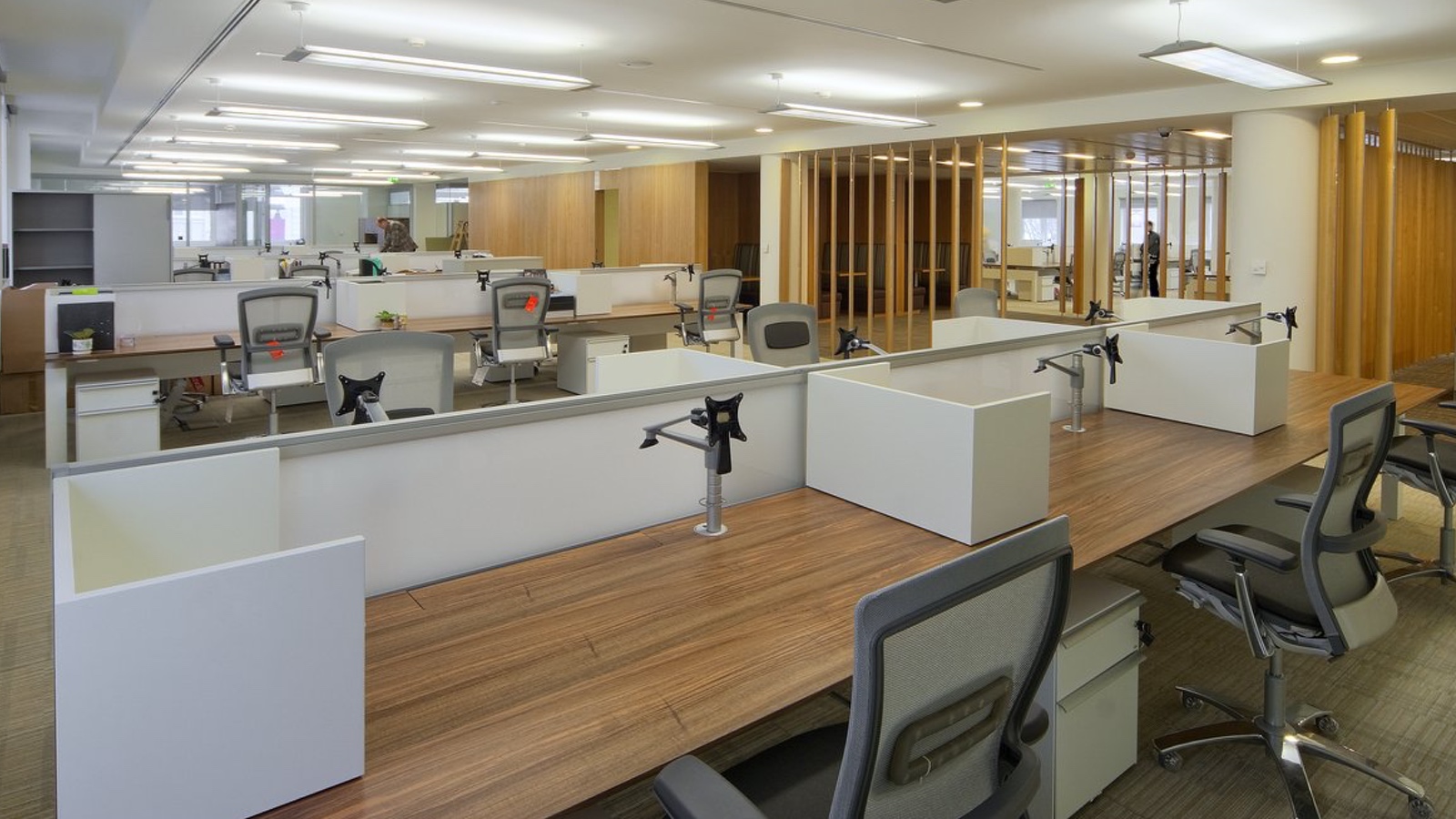 Светлое и просторное пространство офиса Millhouse Capital организовано на базе bench-системы Plateau (Плато) от Knoll International. Рабочие места оборудованы дополнительными аксессуарами и удобными эргономичными креслами.