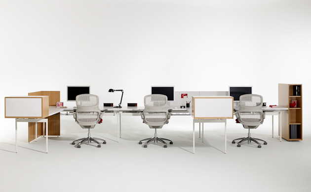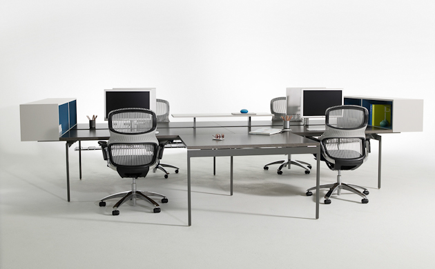 В коллекцию Knoll Antenna входят столы, перегородки и системы хранения. Конструкция столов позволяет создать закрытые рабочие места, не загромождая при этом пространство лишними элементами: достаточно прикрепить к столешнице экран или подвесную тумбу. С помощью специальных креплений легко объединять столы, создавая разные конфигурации.