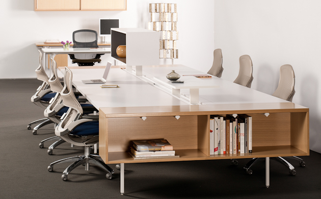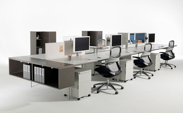 В наличии на складе в Москве представлены рабочие места сотрудников в полной комплектации, кабинеты для руководителей, а также идеально подходящие к ним рабочие кресла Knoll Generation, отличающиеся особой эргономичностью.