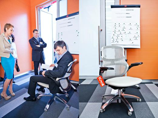 В рамках нового формата презентации — Ergonomic Battle — прошли тест-драйвы лучших кресел для топ-менеджеров. Компания Concept представила кресло Generation от Knoll.