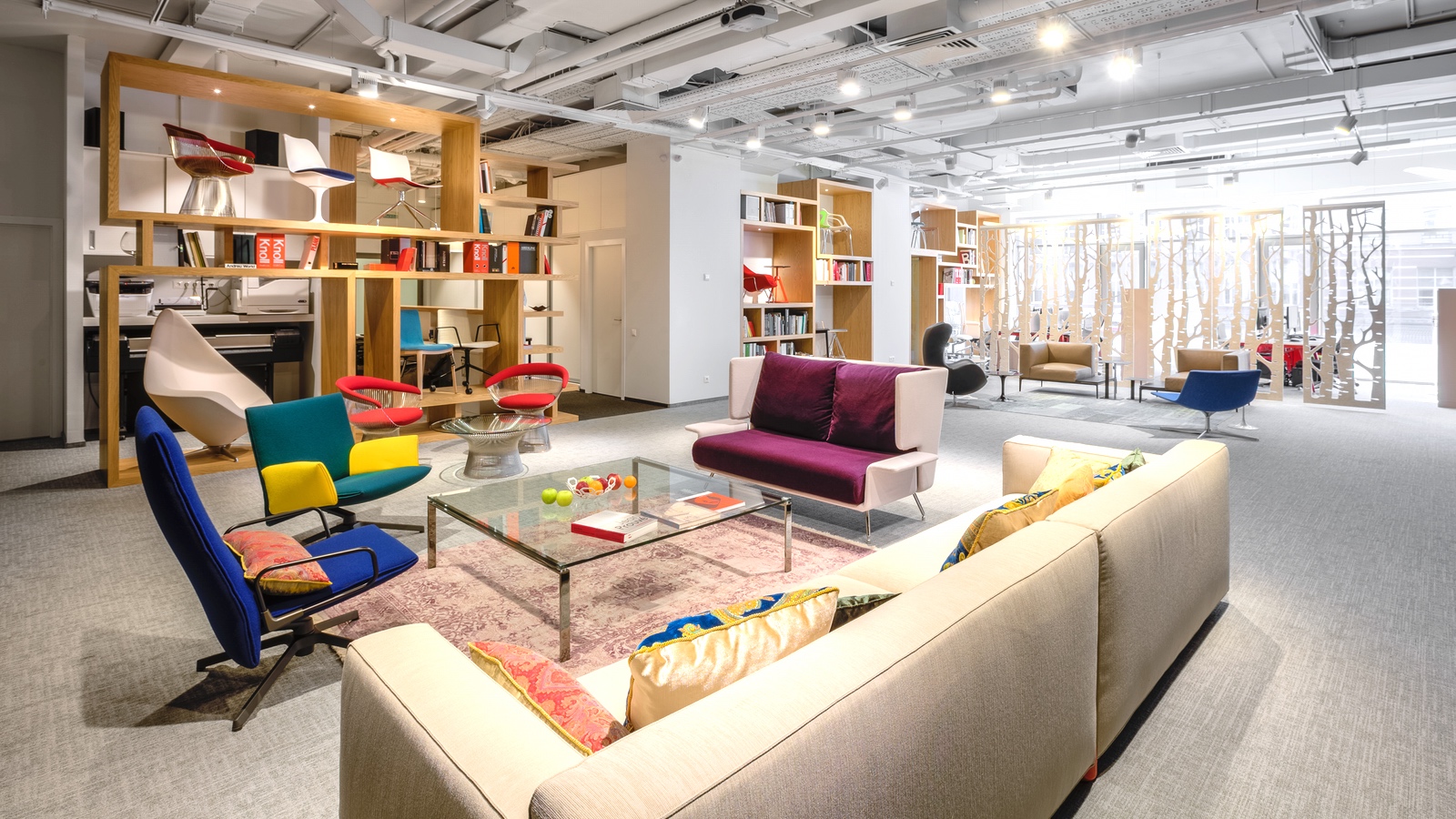 Среди выставленных в шоу-руме экспонатов мебели имеются такие иконические объекты дизайна, как кресла и кофейный стол из коллекции Уоррена Платнера, Womb Chair и пластиковое кресло-тюльпан дизайнера Ээро Сааринена, выпускаемые фабрикой Knoll, а также знаменитое кресло Egg датского мастера Арне Якобсена от Fritz Hansen.