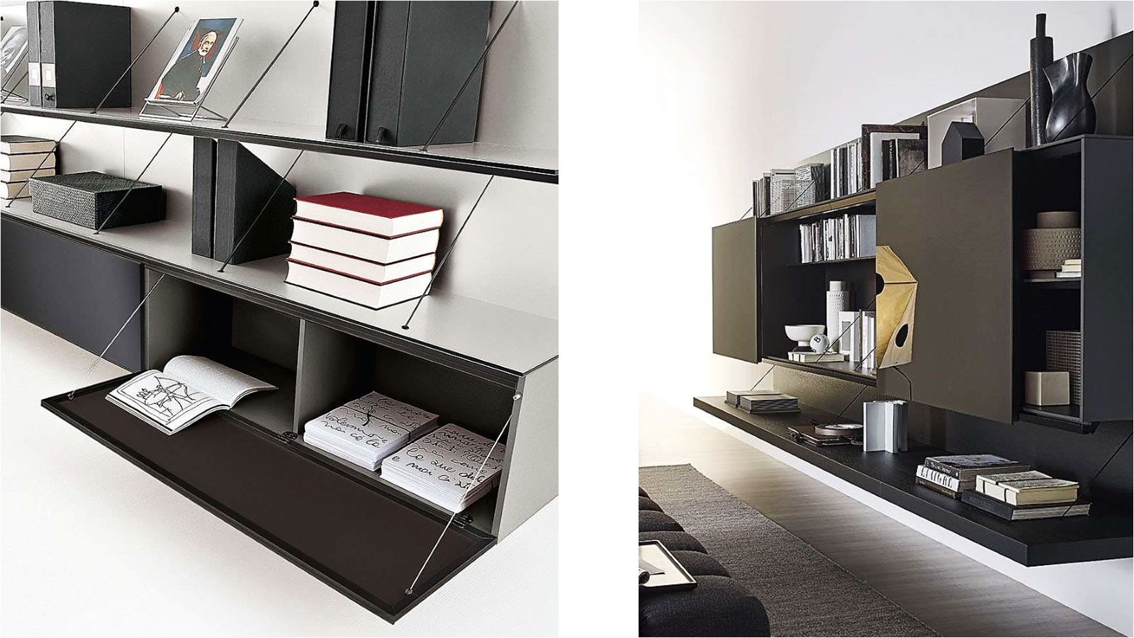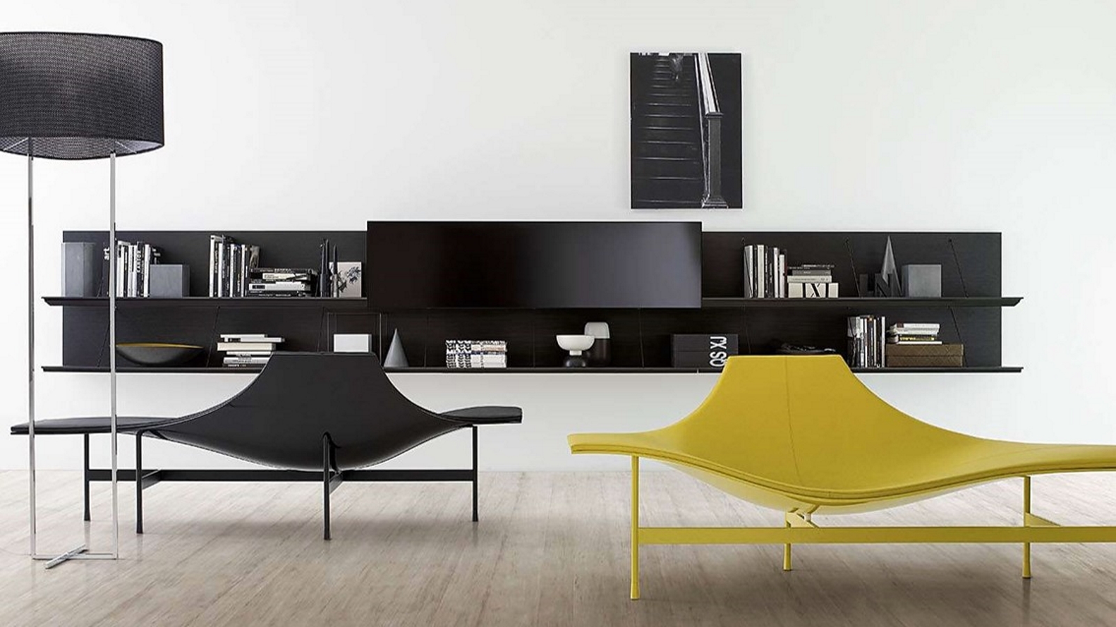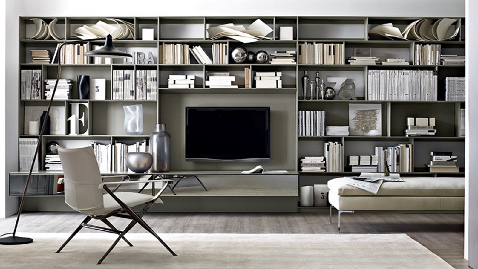 Итальянская компания B&B Italia является лидером в разработке мебели, адаптированной для современной жизни, поддерживая высокий технологий уровень исследований и разработок. Книги и телевидение — это два незаменимых спутника в нашей повседневной жизни. Книги прекрасны, и их не хочется прятать. Они практически становятся отделкой, когда тянутся вдоль стены, оживляя ее при помощи древней и неизменной бумаги. Видеоустройства же являются вещами, противоположными книгам.