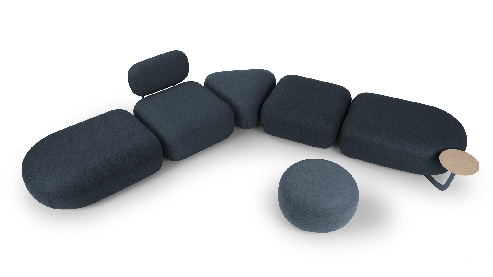 Система Code идентифицирует эстетически-формальный код простых геометрических знаков, входящих в алфавит неформальных предметов мебели для сидения: пуфов и макси-пуфов со спинками и интегрированными столами.