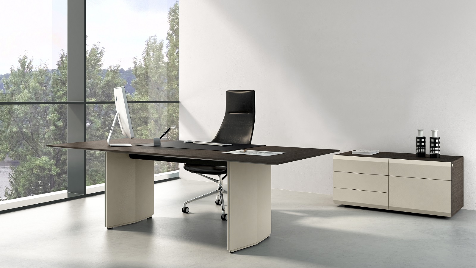 Провода скрыты за элегантно отделанными боковыми панелями. Креденция и шкаф из линейки Pace, выполненные в том же стиле, что и стол, станут идеальным дополнением к модели.