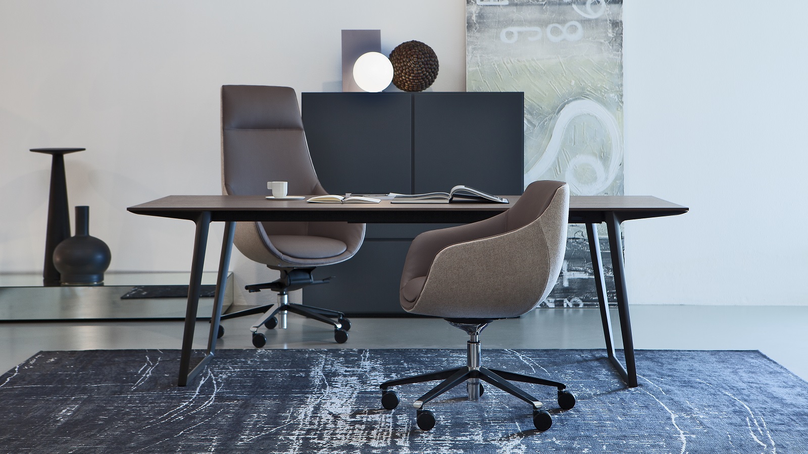 В каталоге бренда представлены четыре категории продукции: коллекция executive, рабочие кресла, мебель для отдыха и аксессуары.